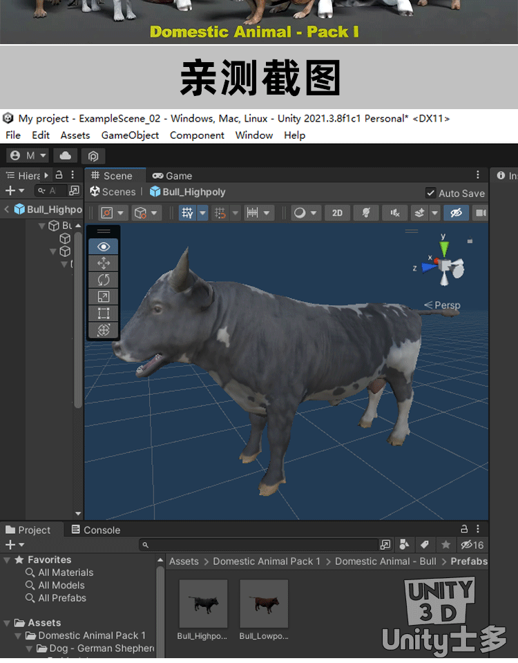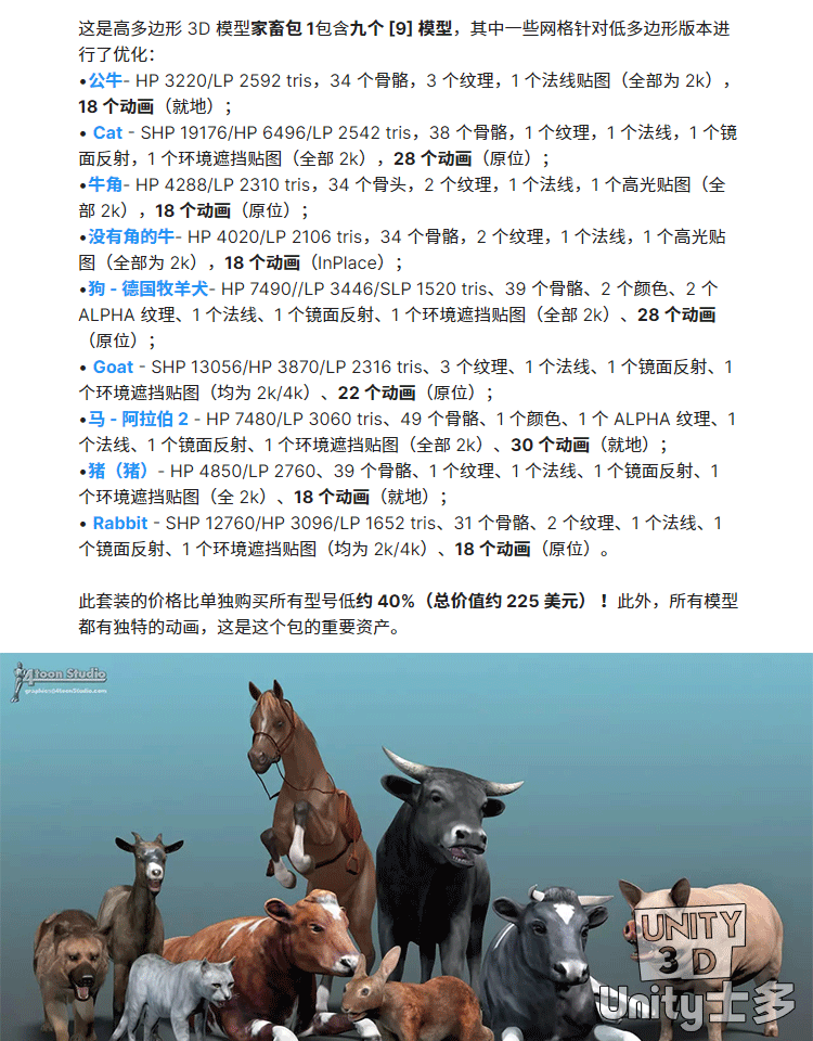 Unity3D家禽动物模型带动画U3D牛猫狗猪兔子Domestic Animal Pack