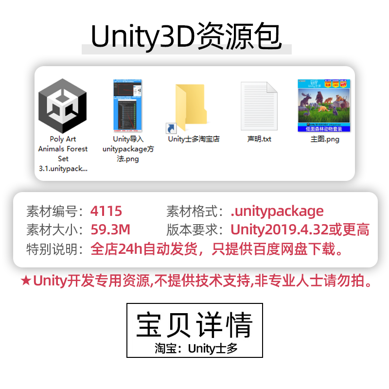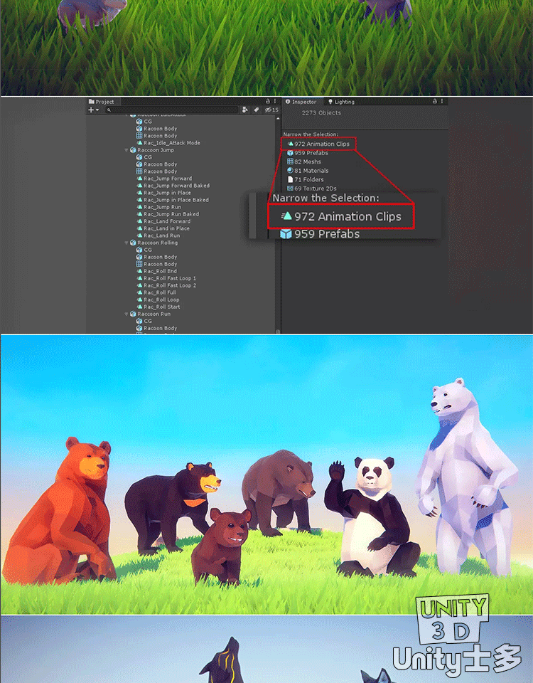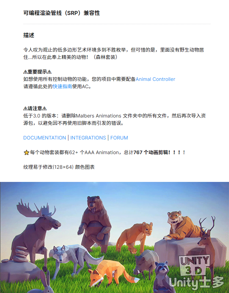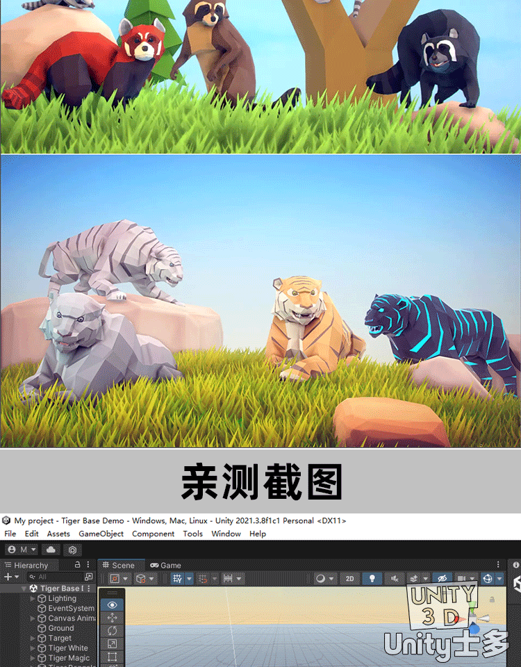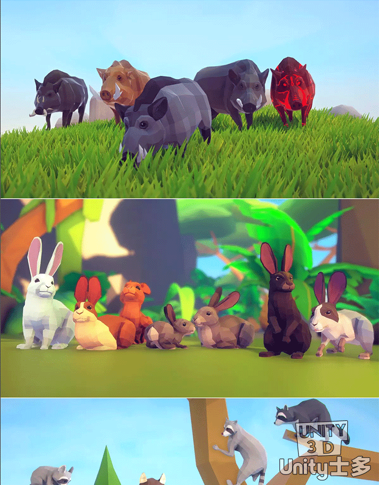 Unity3D低面森林动物模型狼熊狮虎兔狐狸Poly Art Animals Forest