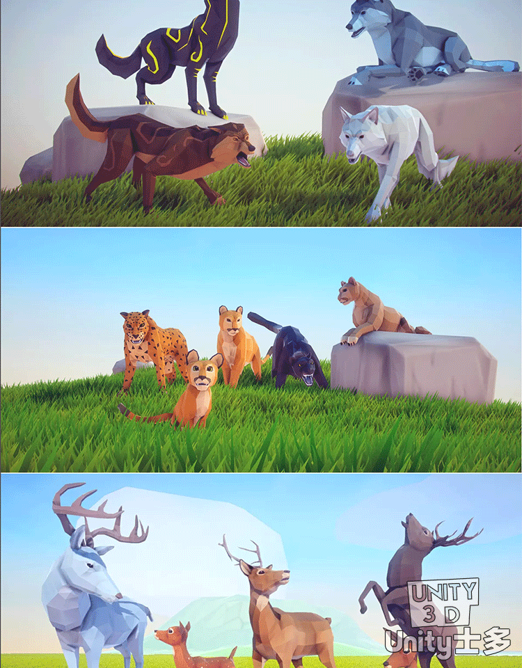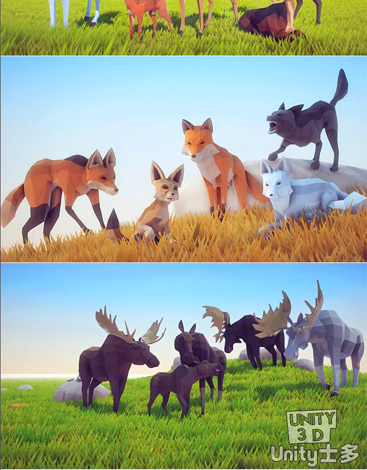 Unity低面野生动物模型U3D麋鹿野猪狐狸狼熊LowPoly Wild Animals