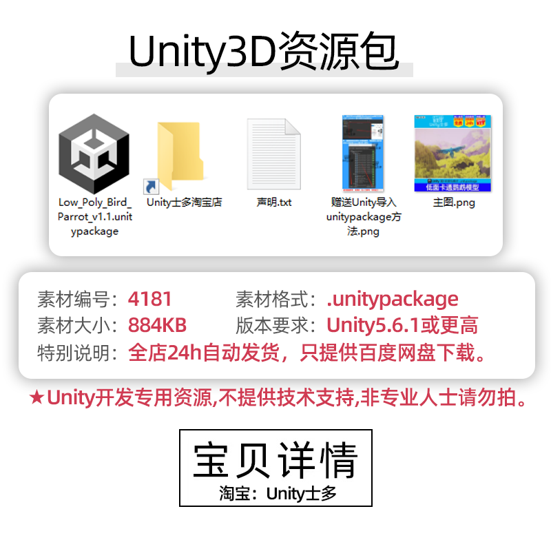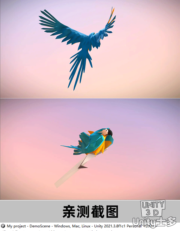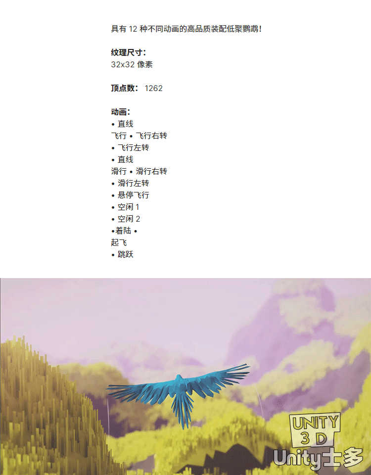 Unity3D低面卡通鸟类小鸟儿鹦鹉模型带动画Low Poly Bird Parrot