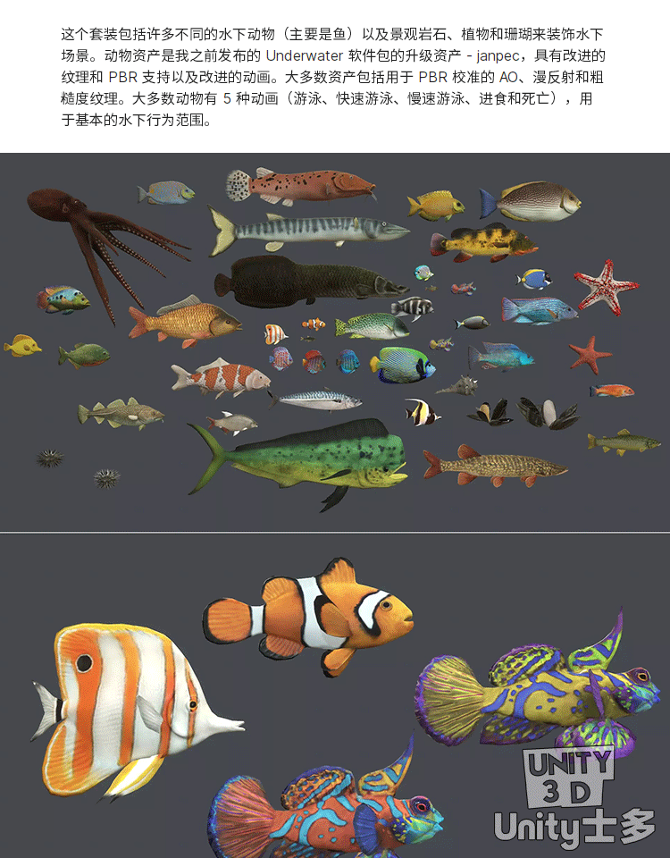 Unity水下动物鱼类淡水海洋鱼儿U3D模型Underwater Animals Pack