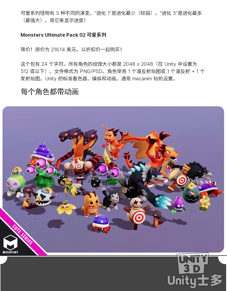 Unity3D怪物怪兽法师模型Monsters Ultimate Pack 06 Cute Series
