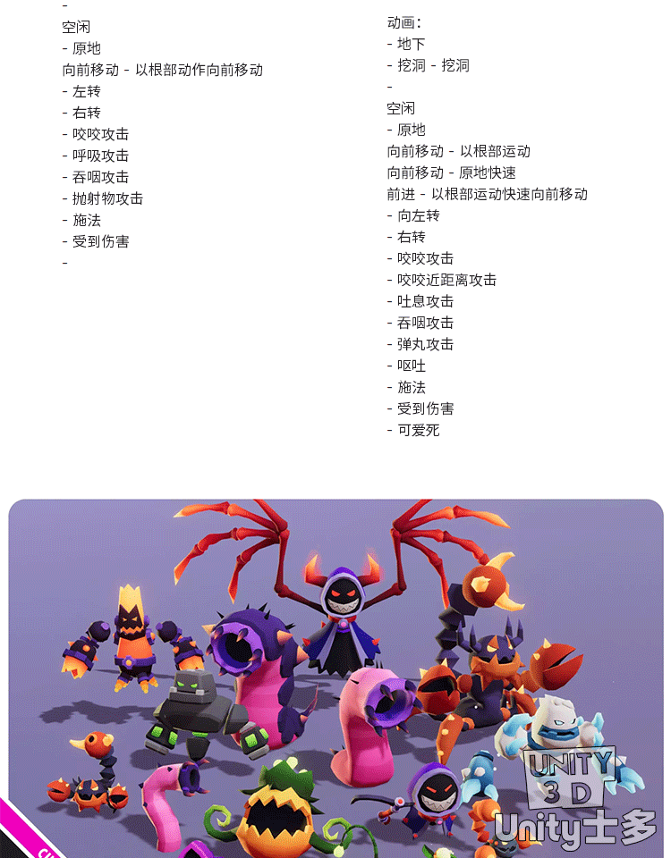 Unity3D怪物怪兽法师模型Monsters Ultimate Pack 06 Cute Series