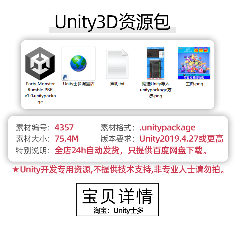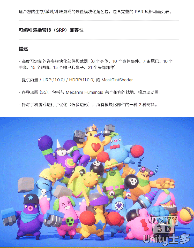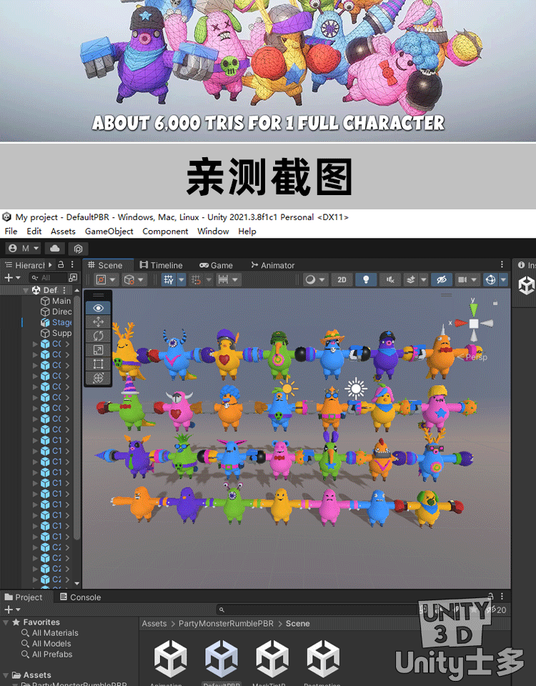 Unity3D可爱Q版卡通怪物动物模型Party Monster Rumble PBR v1.0