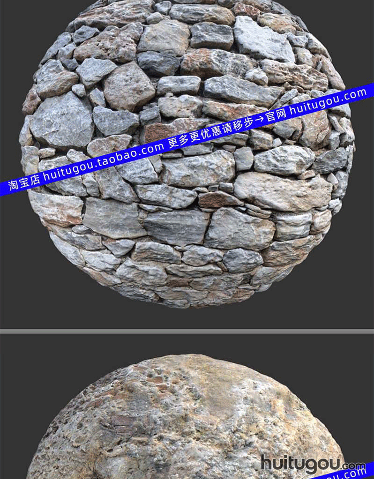 POLIIGON鹅卵石地面墙体PBR材质纹理贴图 石壁无缝通道图