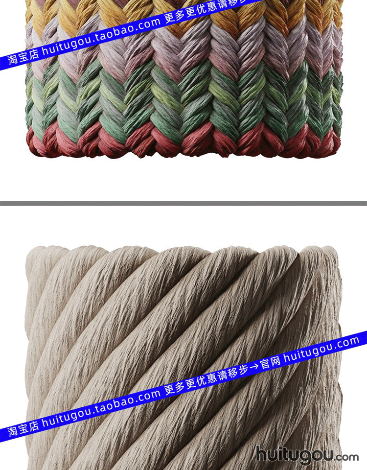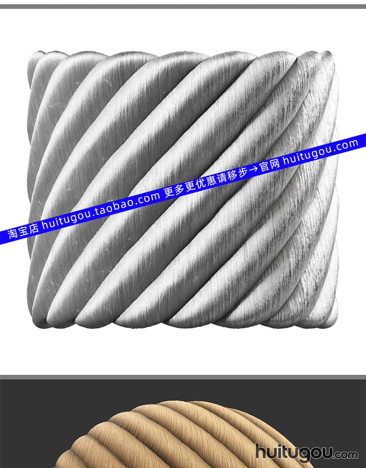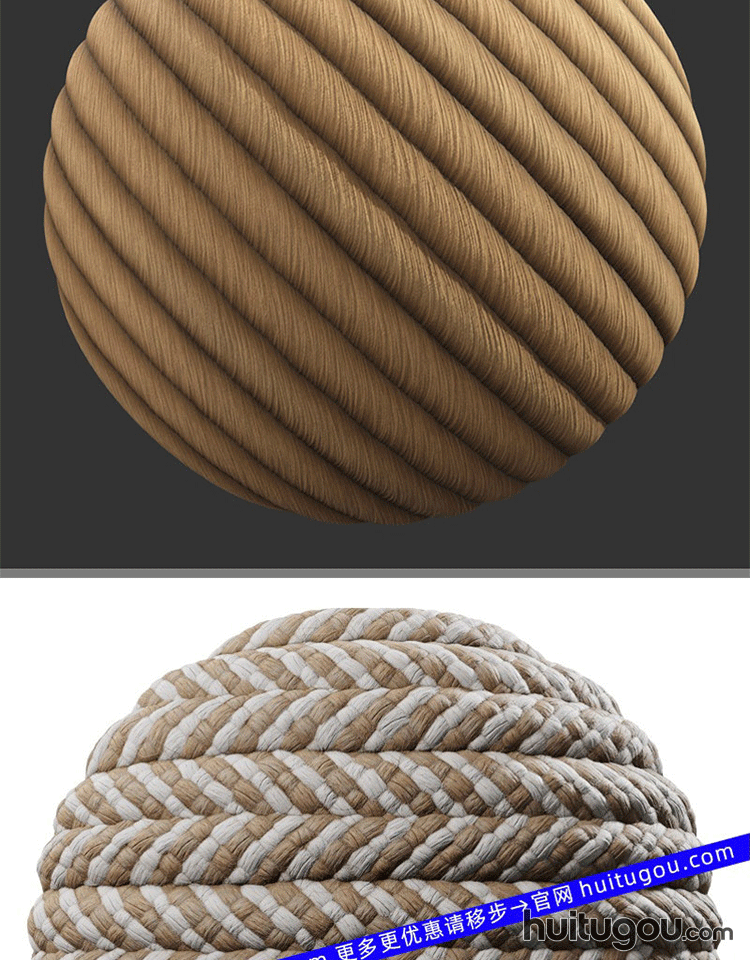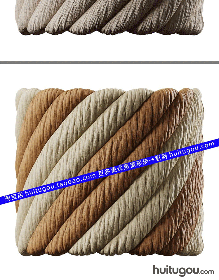 POLIIGON编织绳子PBR材质贴图通道图 麻绳麻布编织品工艺品