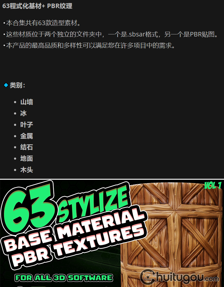 Substance painter常用材质球sbsar金属石头木头png格式PBR贴图
