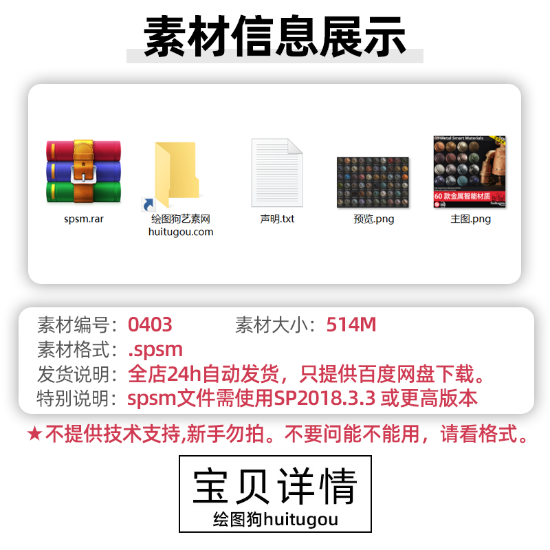 Substance painter常用材质球sbsar金属石头木头png格式PBR贴图