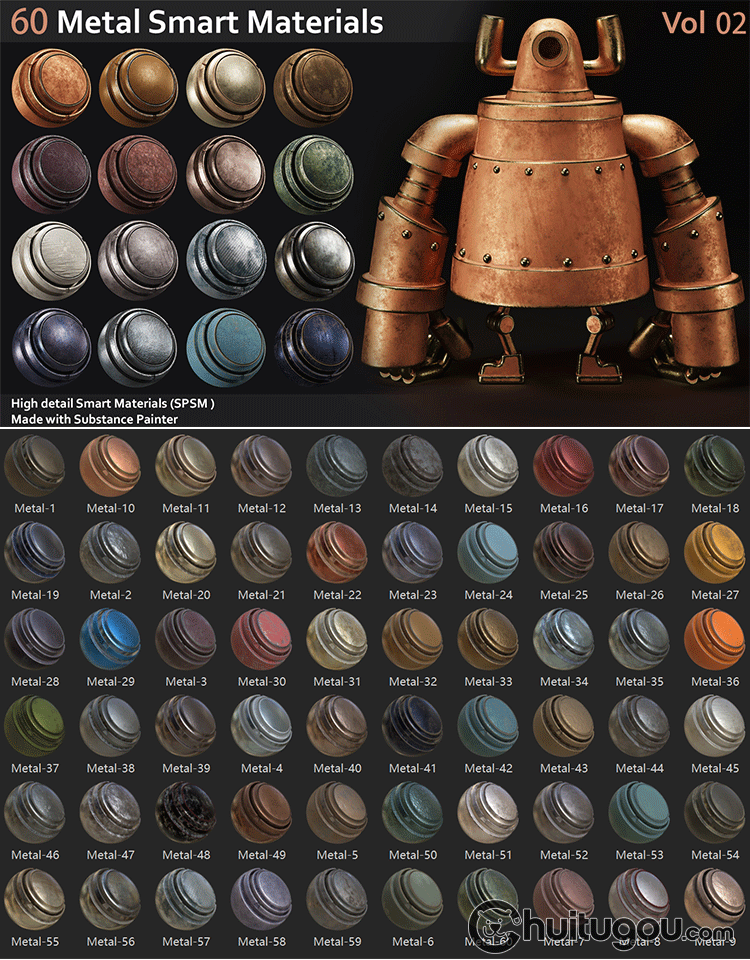 Substance Painter磨损金属智能材质球spsm锈蚀破损掉漆纹理素材