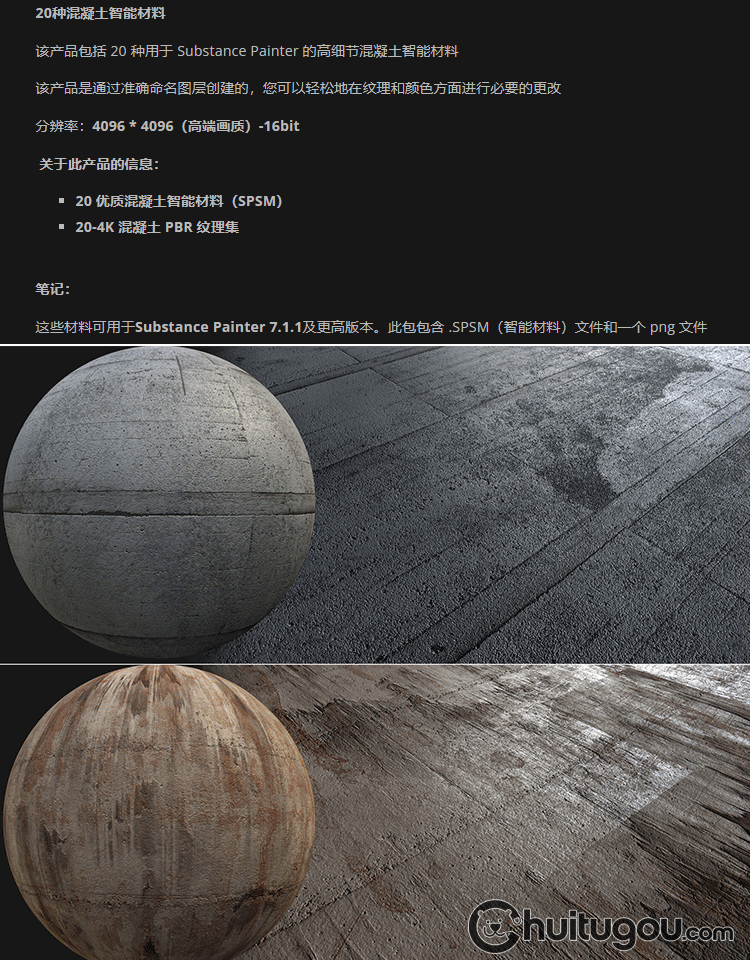 Substance Painter混凝土智能材质spsm格式PBR纹理4K高清贴图素材