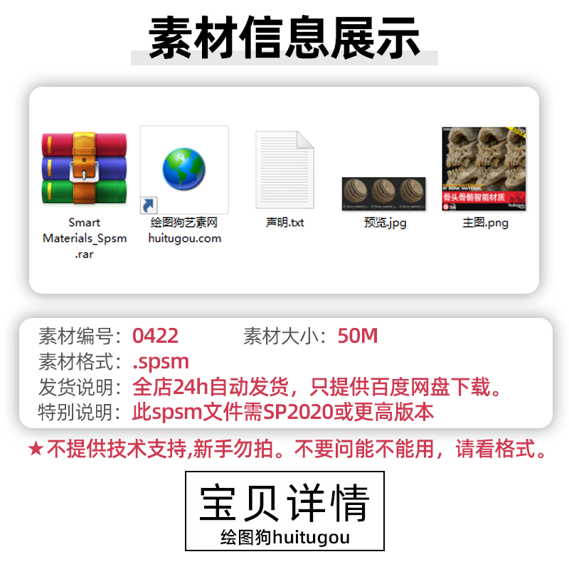 Substance Painter骨头智能材质球spsm骨骼头骨sp纹理设计素材