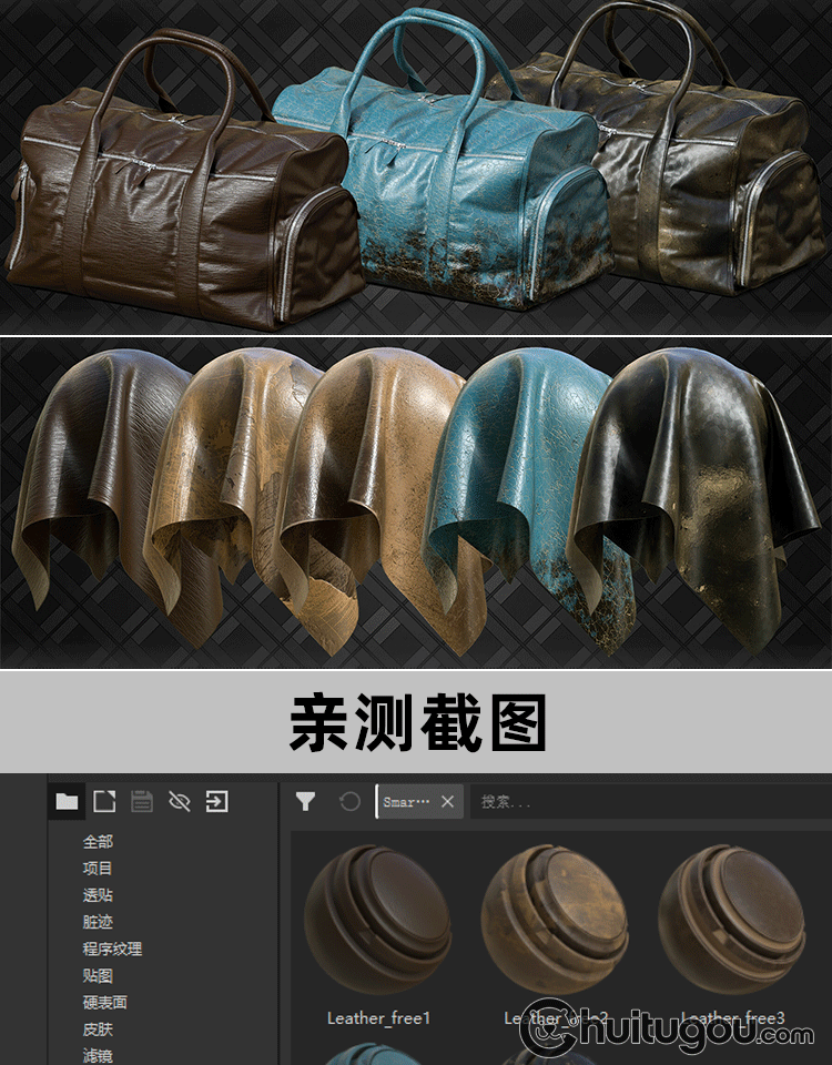 Substance Painter皮革sp智能材质球spsm皮质背包PBR纹理设计素材