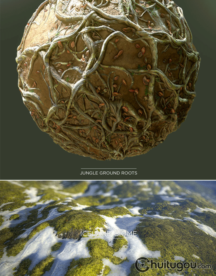 SP地面PBR材质sbsar草地青苔戈壁荒漠沙漠苔藓积雪地岩石湿泥土地