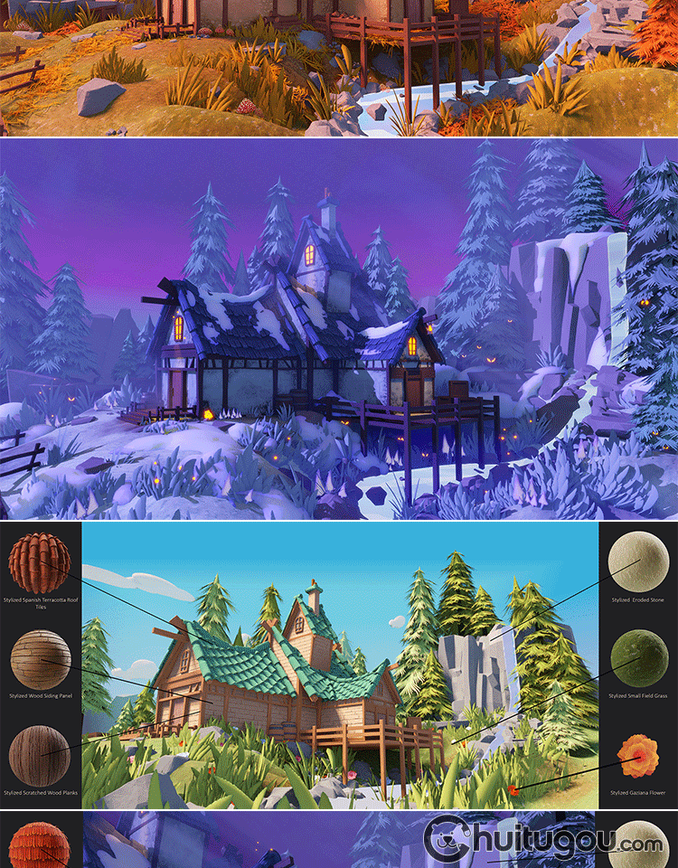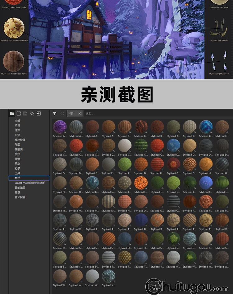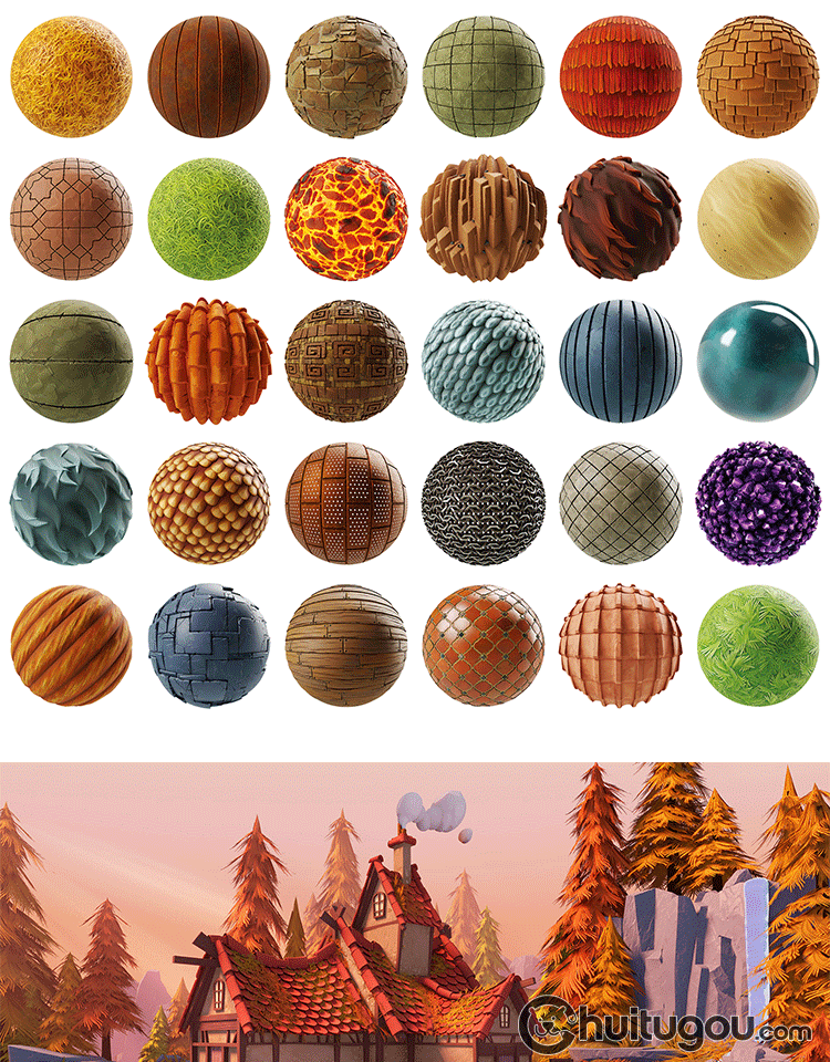 SP卡通风格化材质球sbsar墙面地面屋顶草地岩浆皮毛羽毛sbs素材