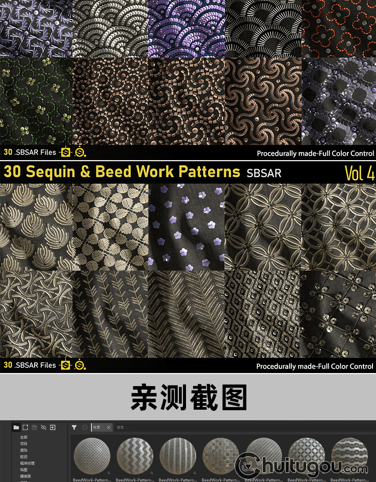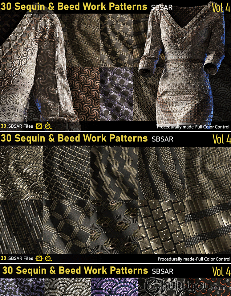 Substance Painter印花亮片织物材质sbsar花纹服装布料SP纹理素材