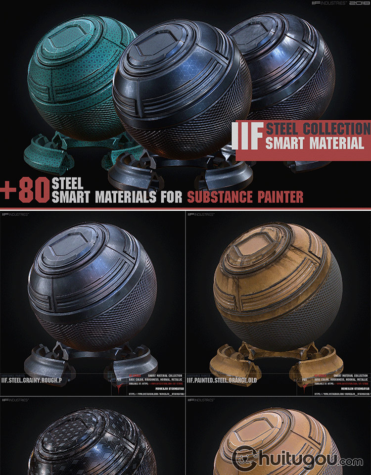 Substance Painter科幻钢铁金属智能材质spsm纹理预设SP设计素材