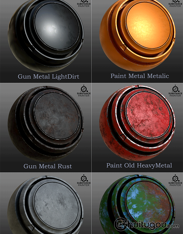 PBR金属智能材质球spsm铁锈蚀掉漆铣削钢彩虹钢SP纹理设计素材