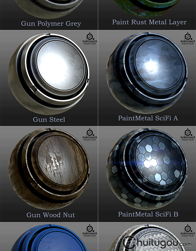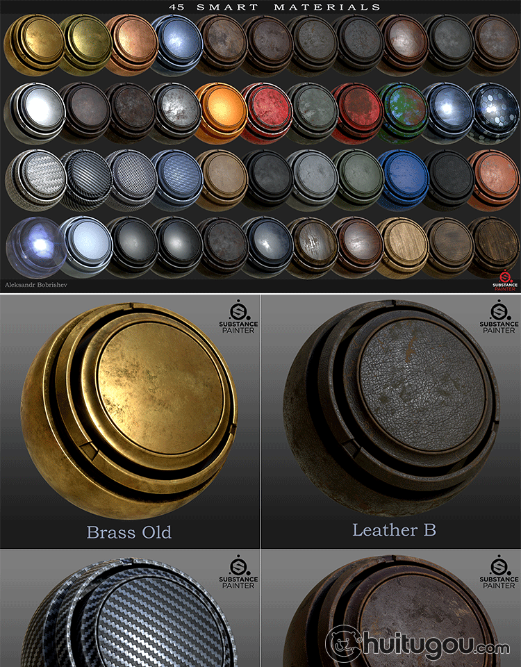 常用PBR智能材质球spsm皮革金属木材塑料铜铁锈漆SP纹理设计素材