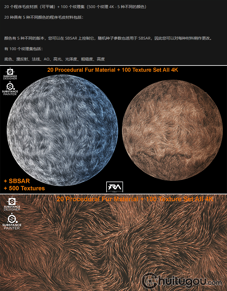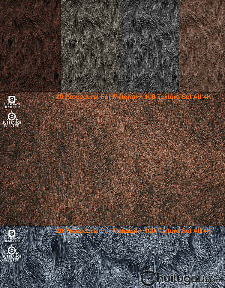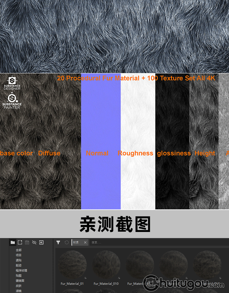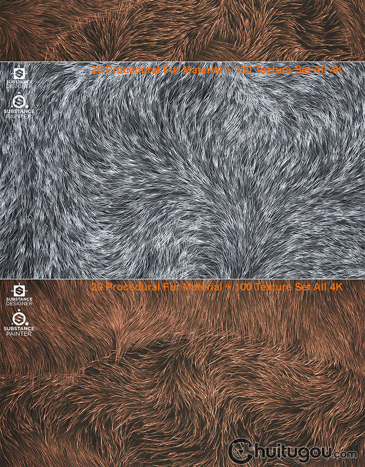 SP动物毛发皮毛材质球sbsar平铺无缝PBR通道图4K写实狗猫纹理贴图