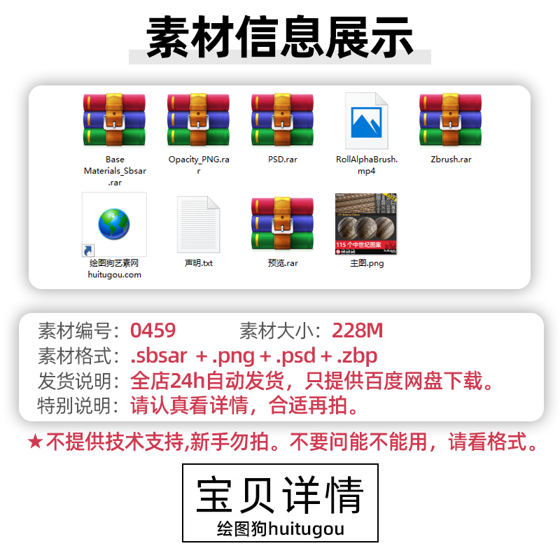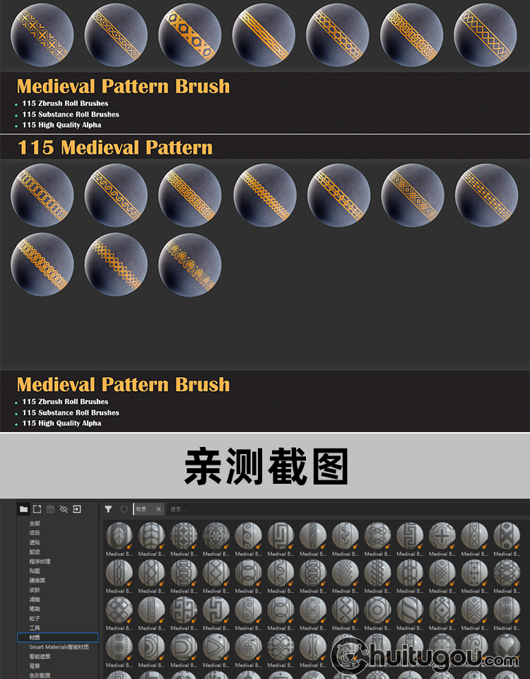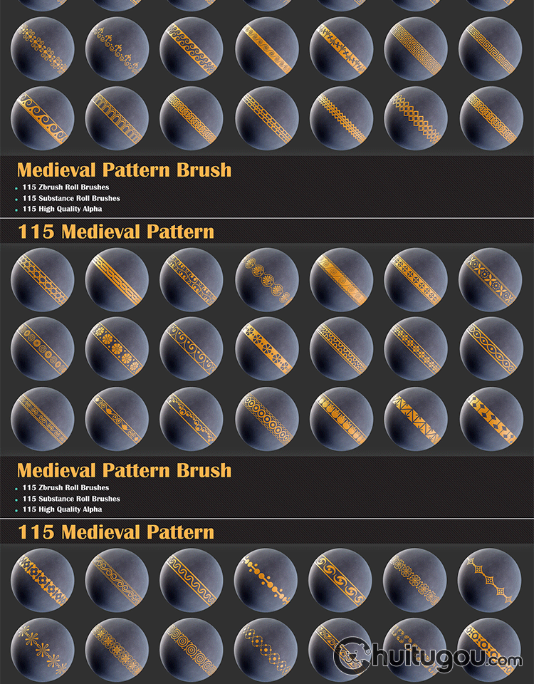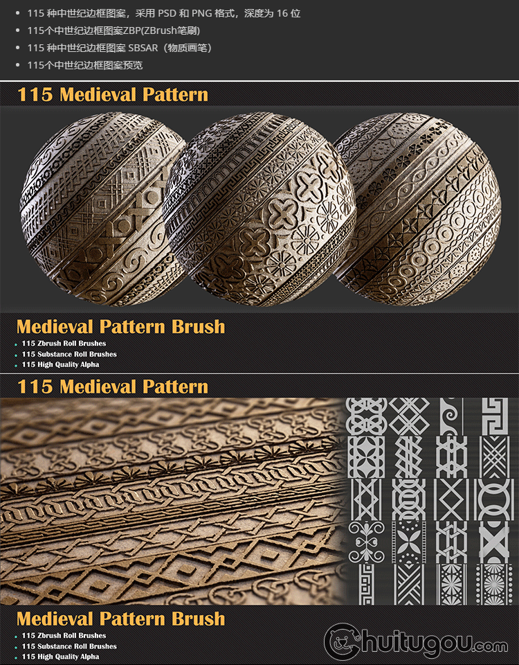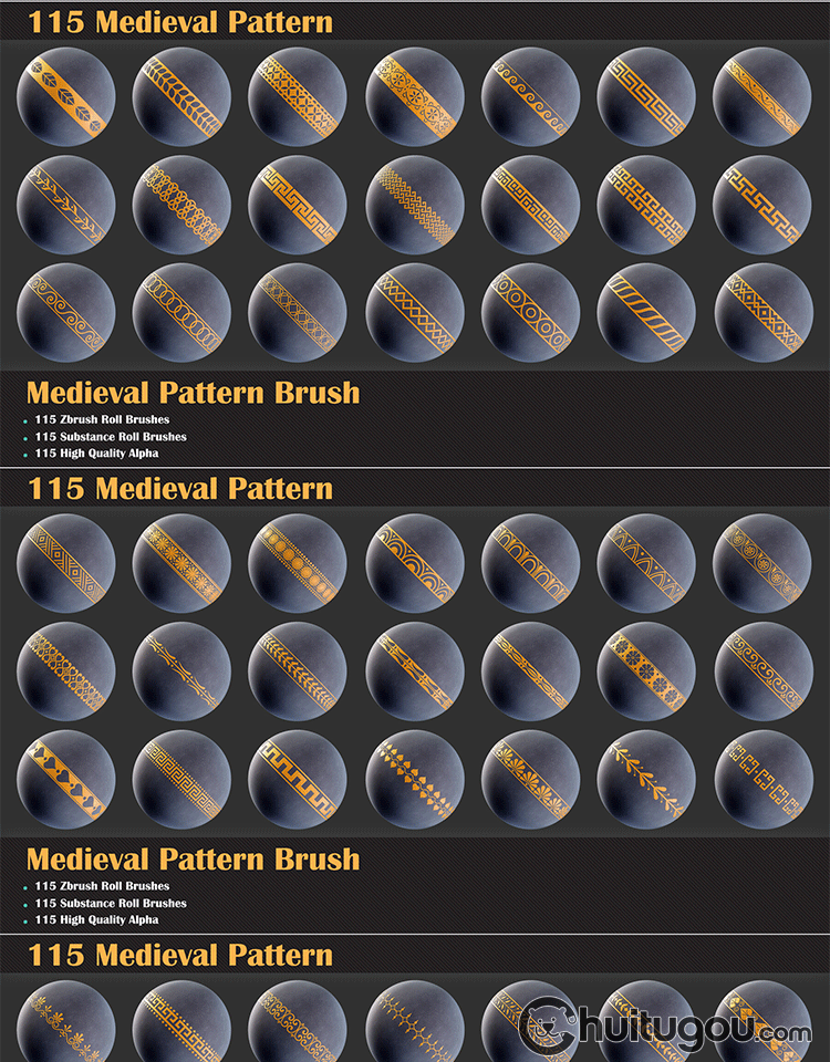 中世纪图案材质球sbsar装饰边框花纹zbp笔刷alpha纹理阿尔法贴图