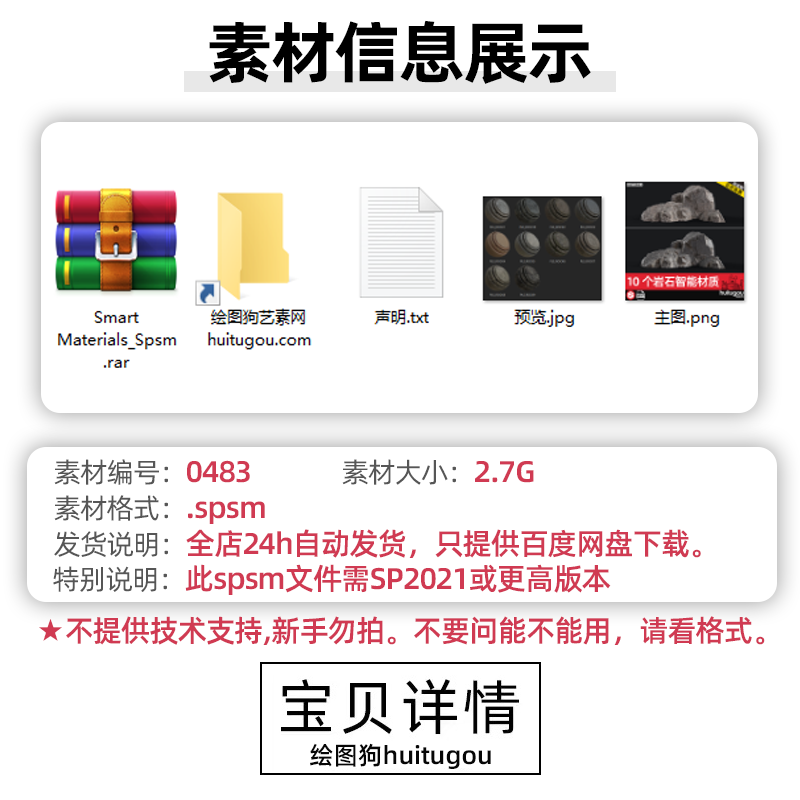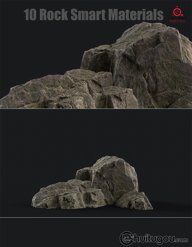 Substance Painter石头岩石智能材质spsm石质地形山体SP纹理设计