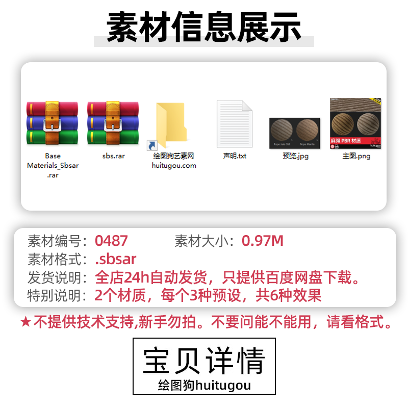 Substance Painter写实粗旧麻绳SP材质球sbsar麻绳索sbs格式素材