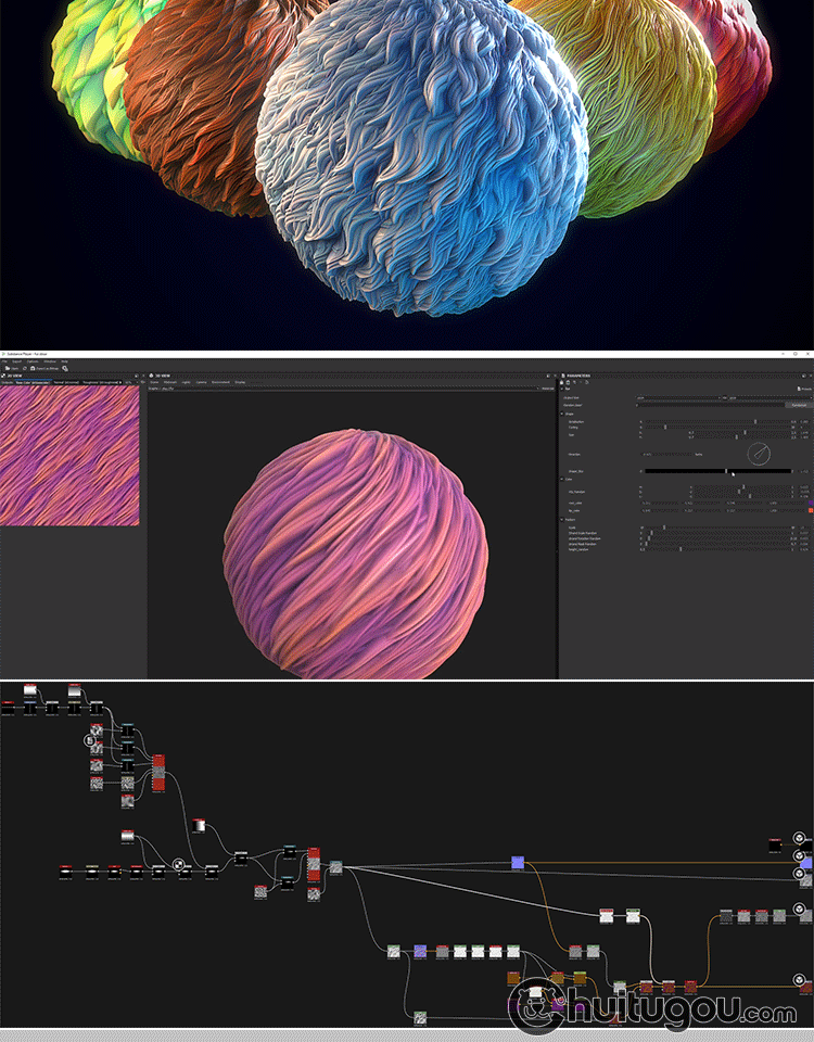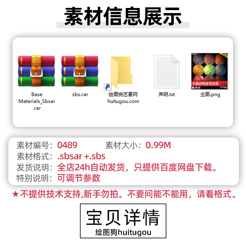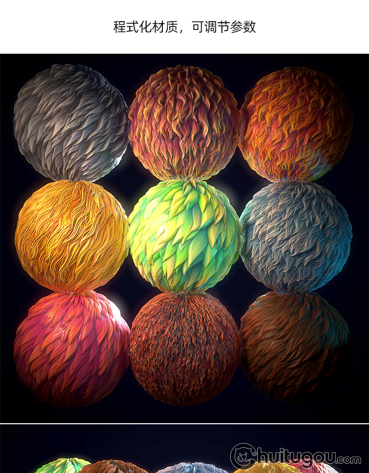Substance Painter卡通动物猫狗兔人物皮毛头发毛发SP程序材质球