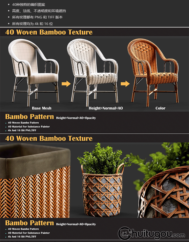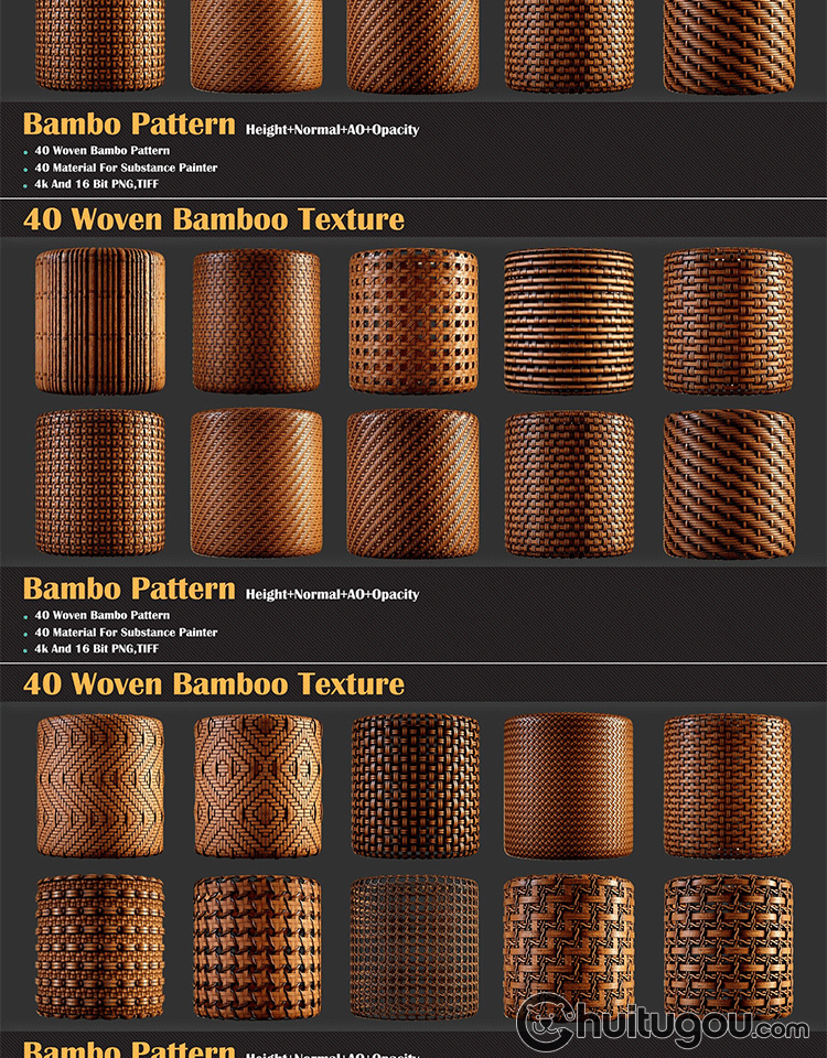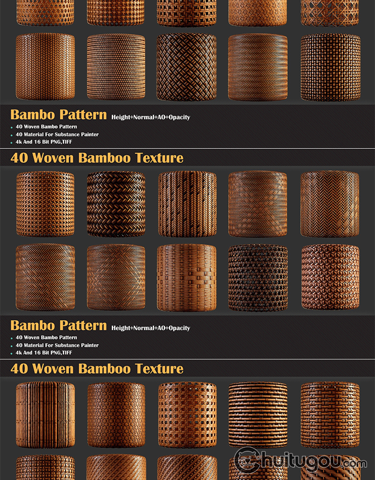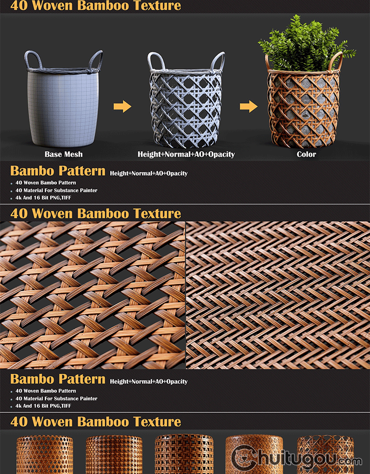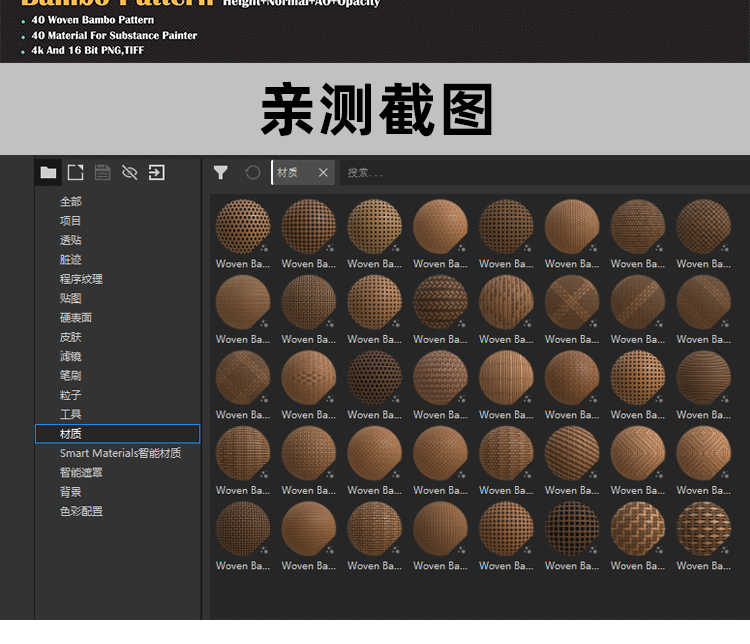 Substance Painter编织藤条织物材质sbsar竹编竹篓PBR贴图SP纹理