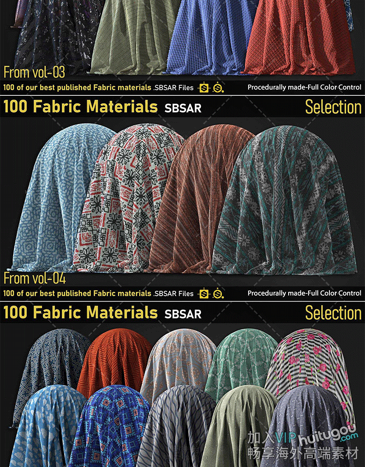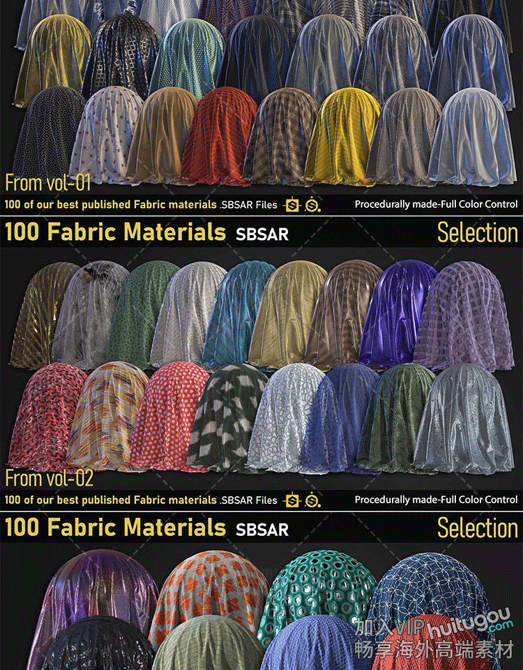 SP风格化织物布料皮革材质球服装面料布料丝绸sbsar格式纹理素材