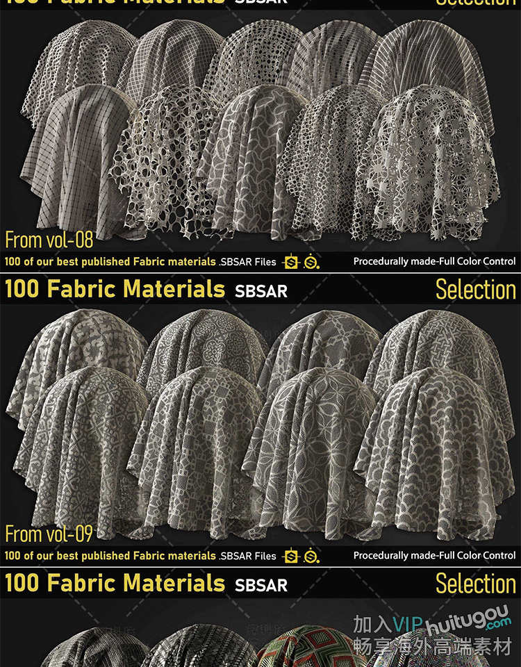 PBR布料材质球sbsar金属亮片刺绣撕裂织物蕾丝绸缎SP纹理设计素材