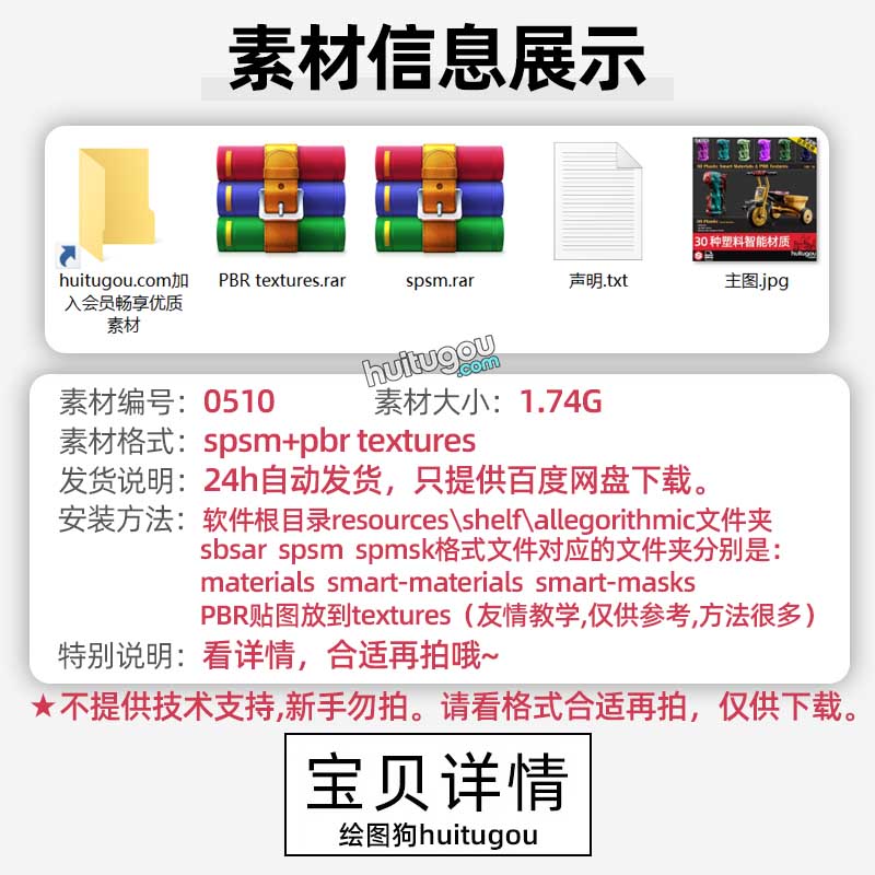 SP塑料塑胶玩具智能材质球spsm格式程式化PBR材质Substance素材