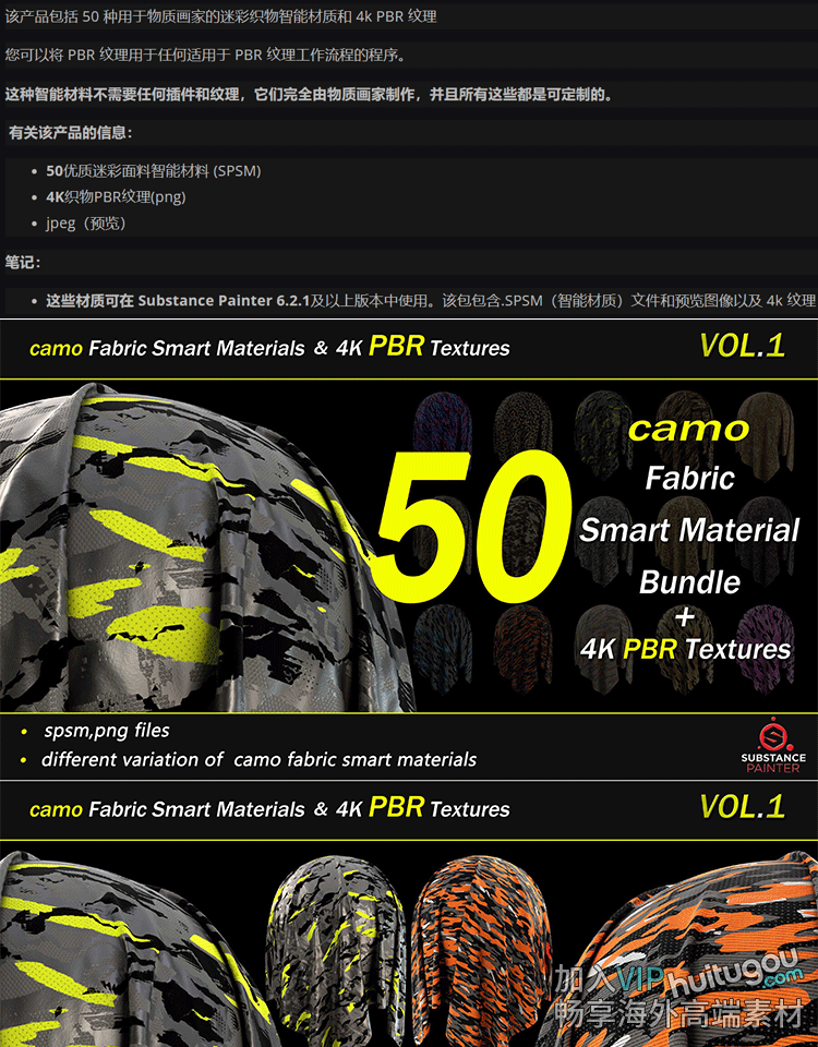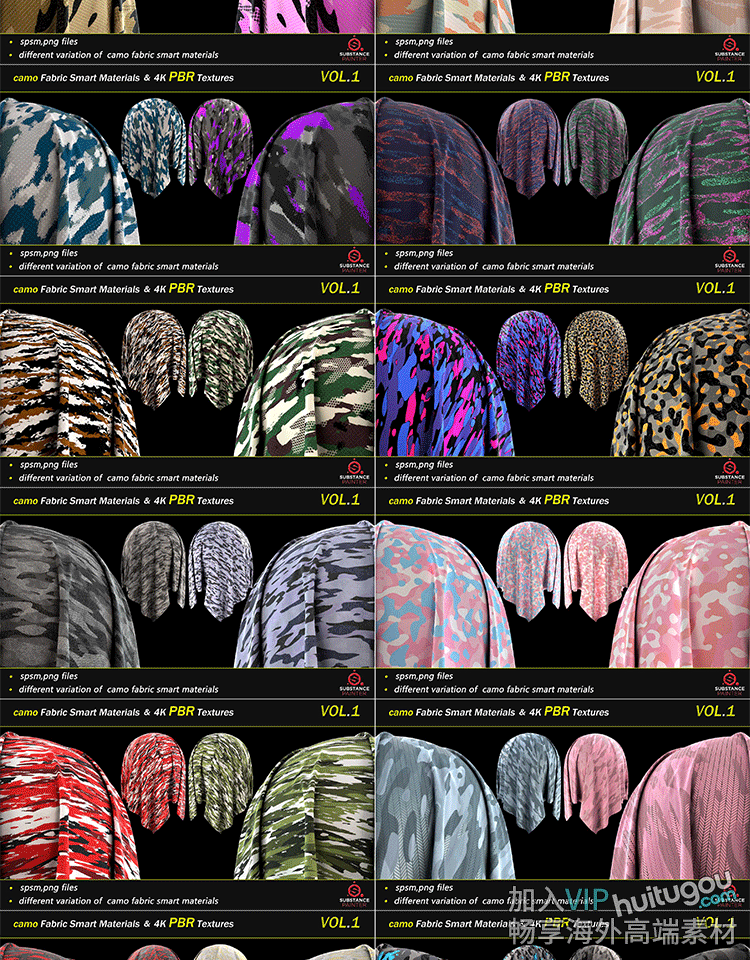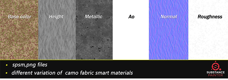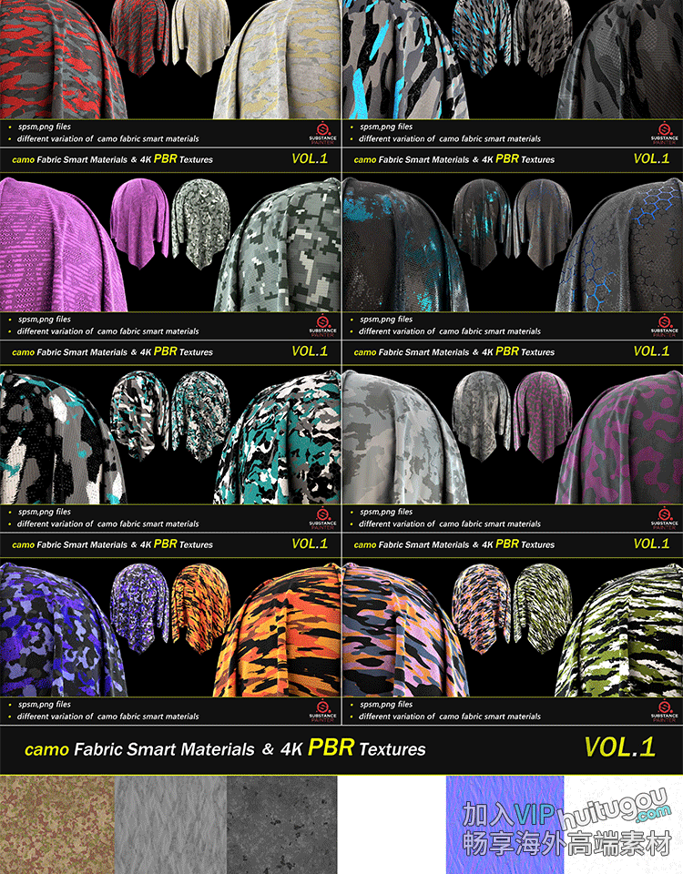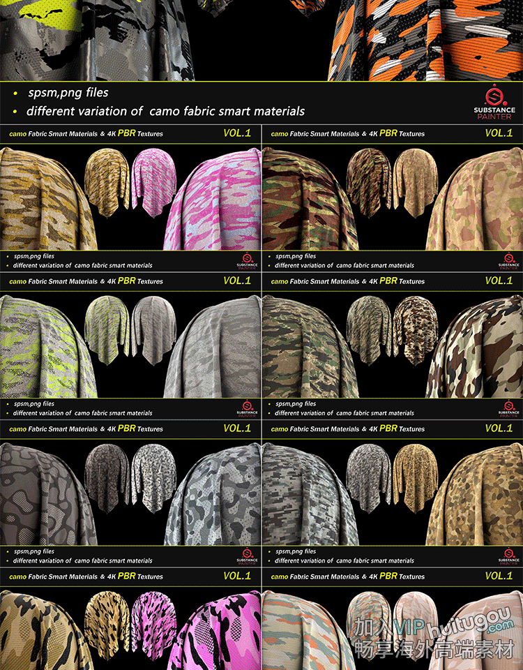 SP迷彩智能材质spsm迷彩衣服面料材质球PBR材质设计Substance素材
