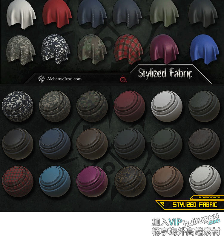 SP风格化织物布料皮革材质球服装面料布料丝绸sbsar格式纹理素材