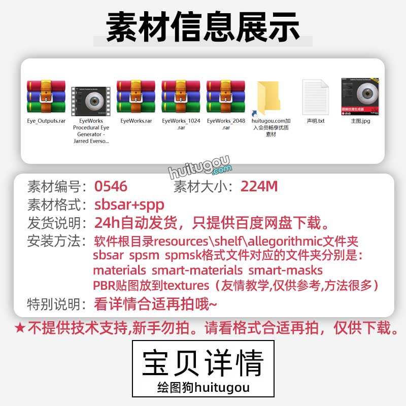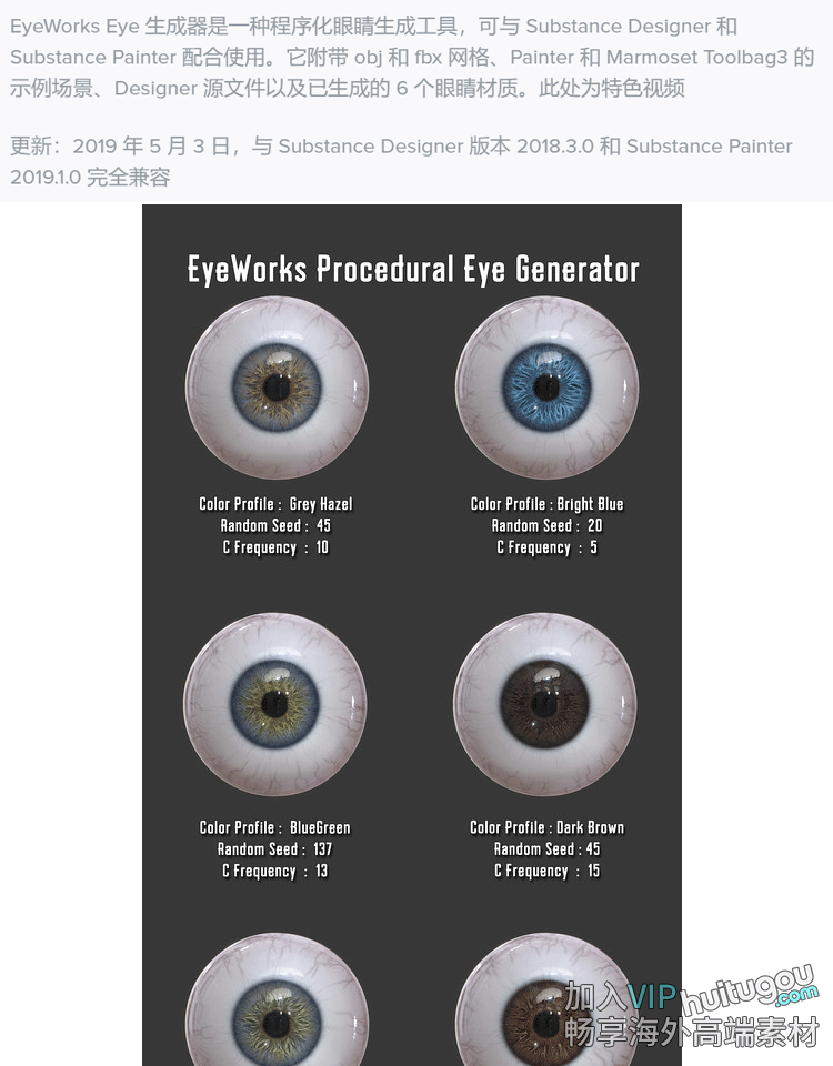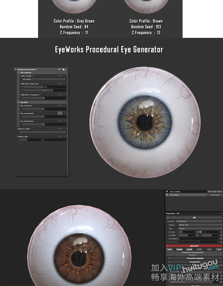 SP眼球材质sbsar材质球spp格式眼睛纹理生成器Substance设计素材
