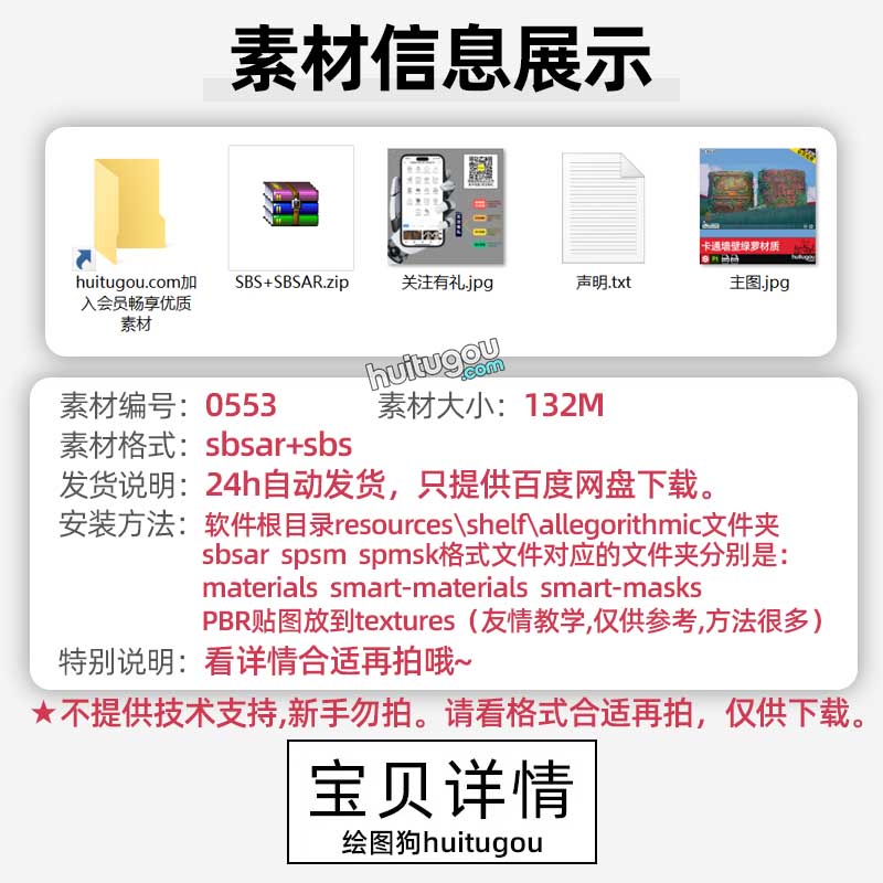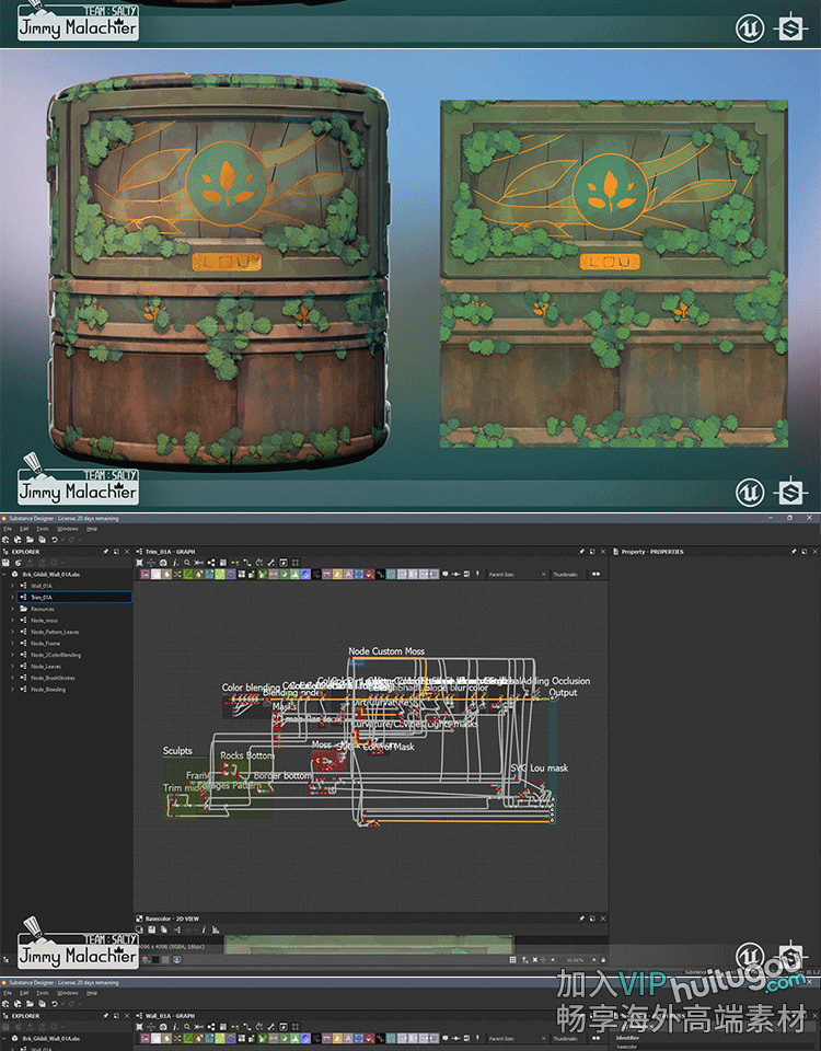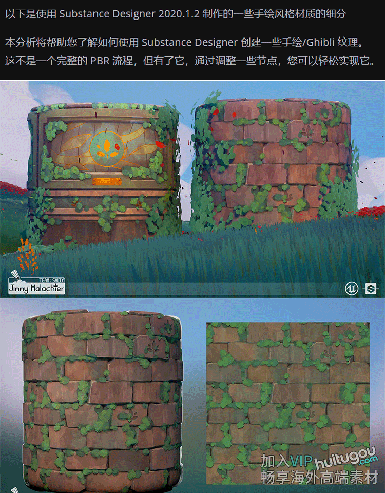 SP/Pt材质素材卡通风格化墙壁绿萝材质sbsar材质球 SBS格式SD素材