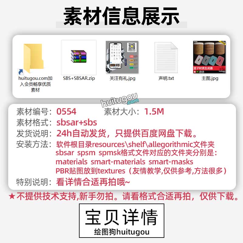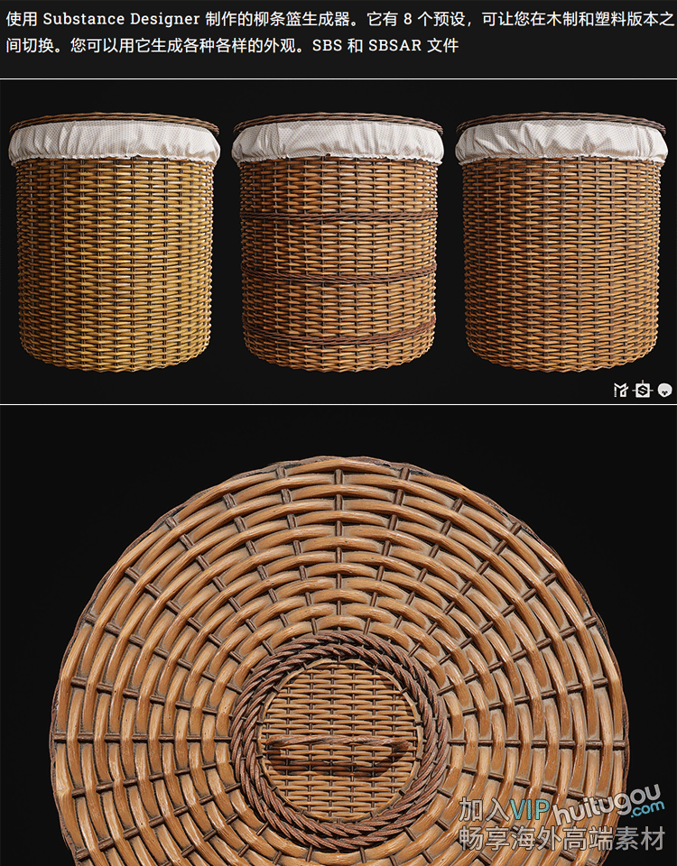 SP/Pt材质素材 柳条藤条篮子材质生成器sbsar材质球SBS格式SD材质