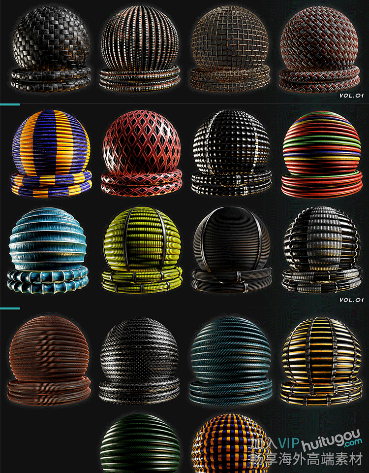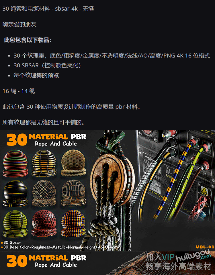 Pt/SP材质30款绳索铁丝网电缆sbsar格式基本材质球PBR纹理png贴图