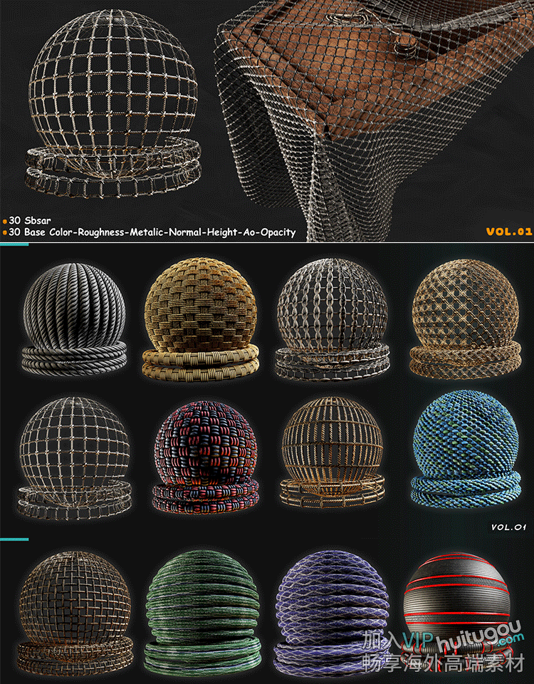 SP/Pt材质30款绳索网格铁网电缆材料sbsar材质球PBR纹理贴图JPG