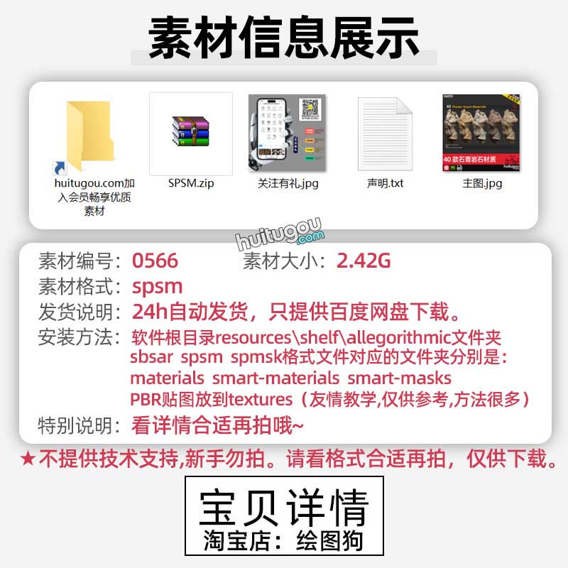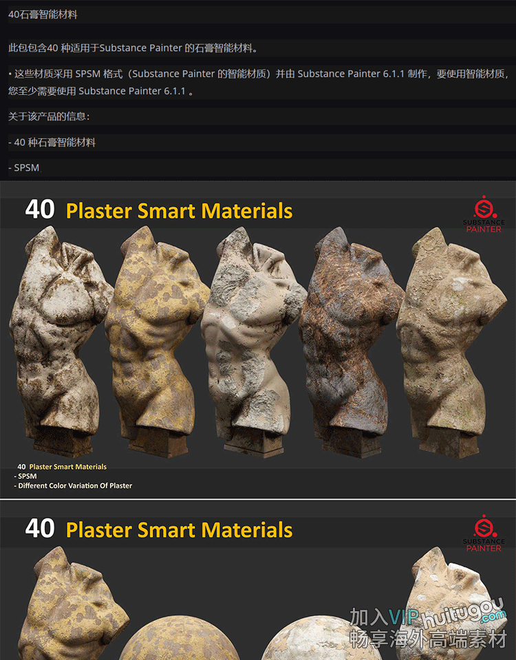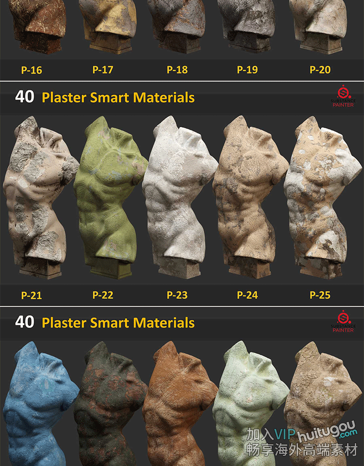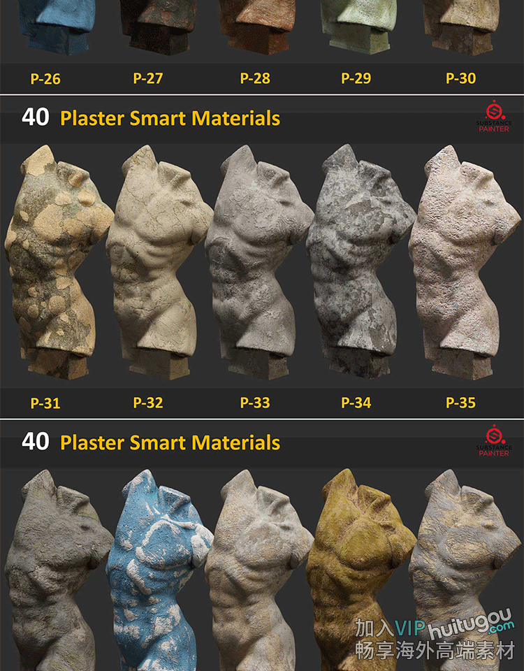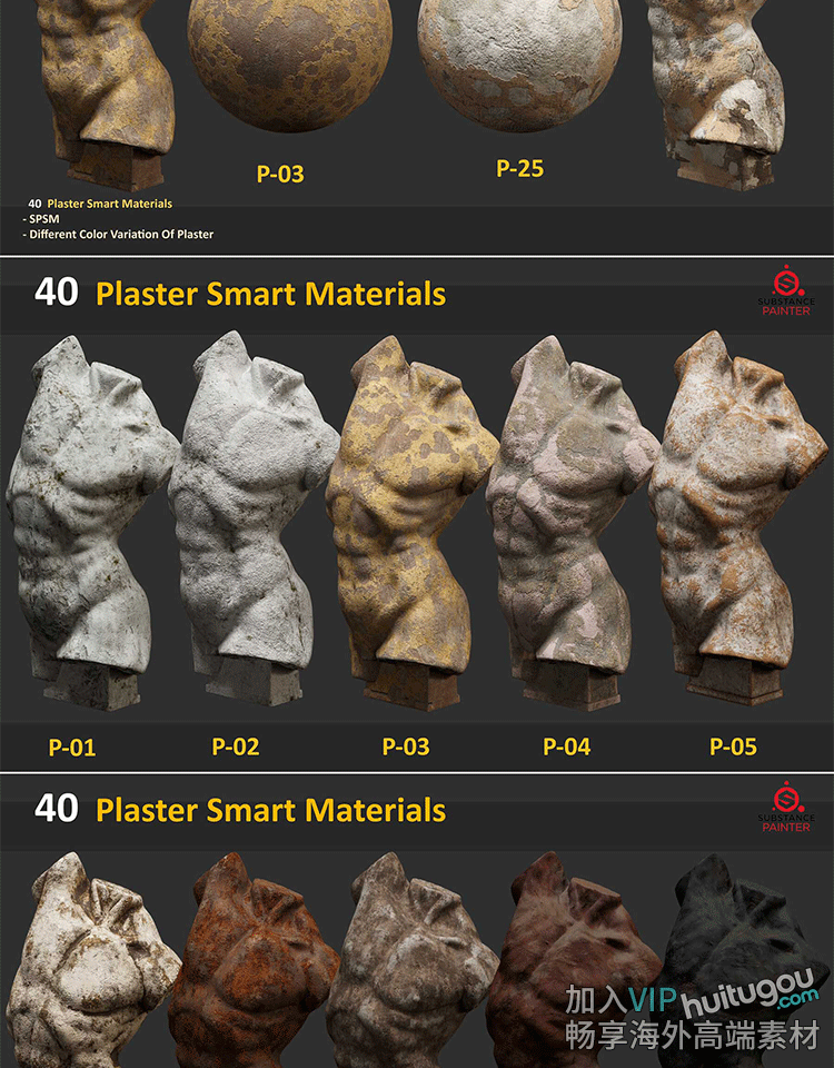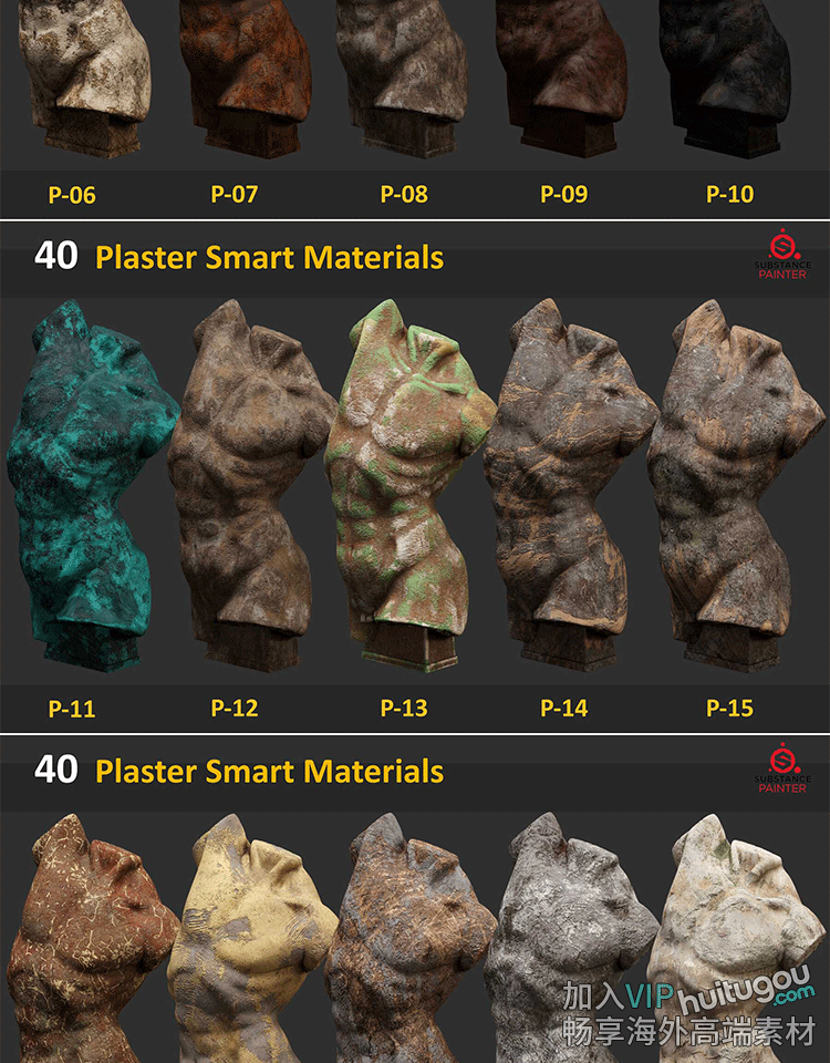 SP/Pt材质40款石膏磨损做旧石头龟裂岩石材质SPSM格式智能材质球