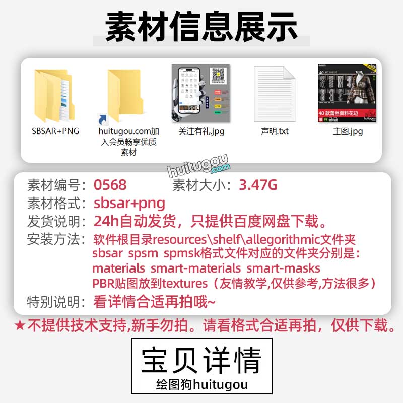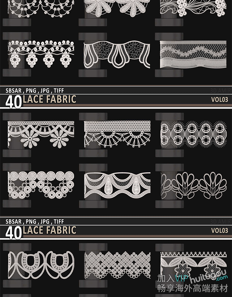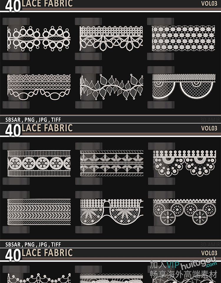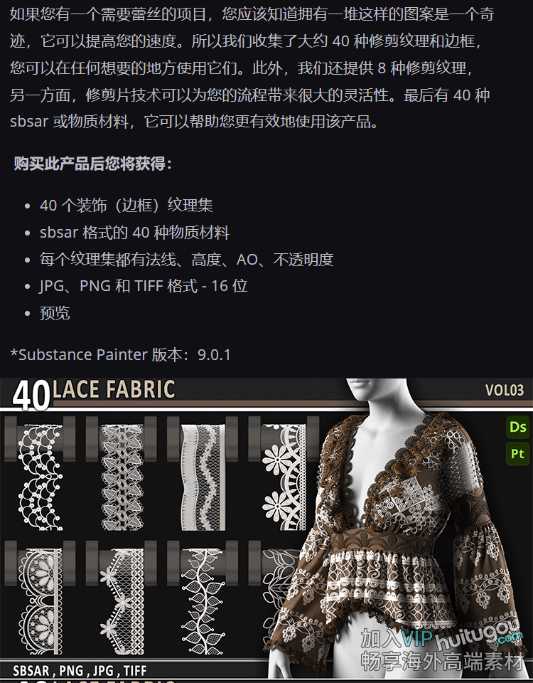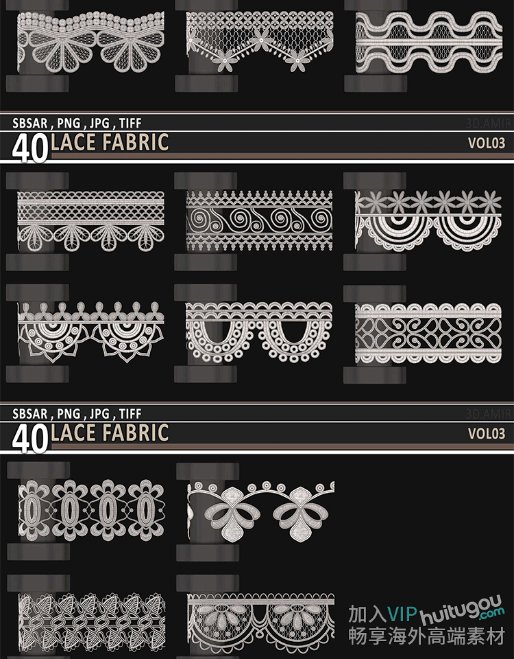 SP/Pt材质40款蕾丝面料花边png纹理PBR贴图SBSAR格式基础材质球