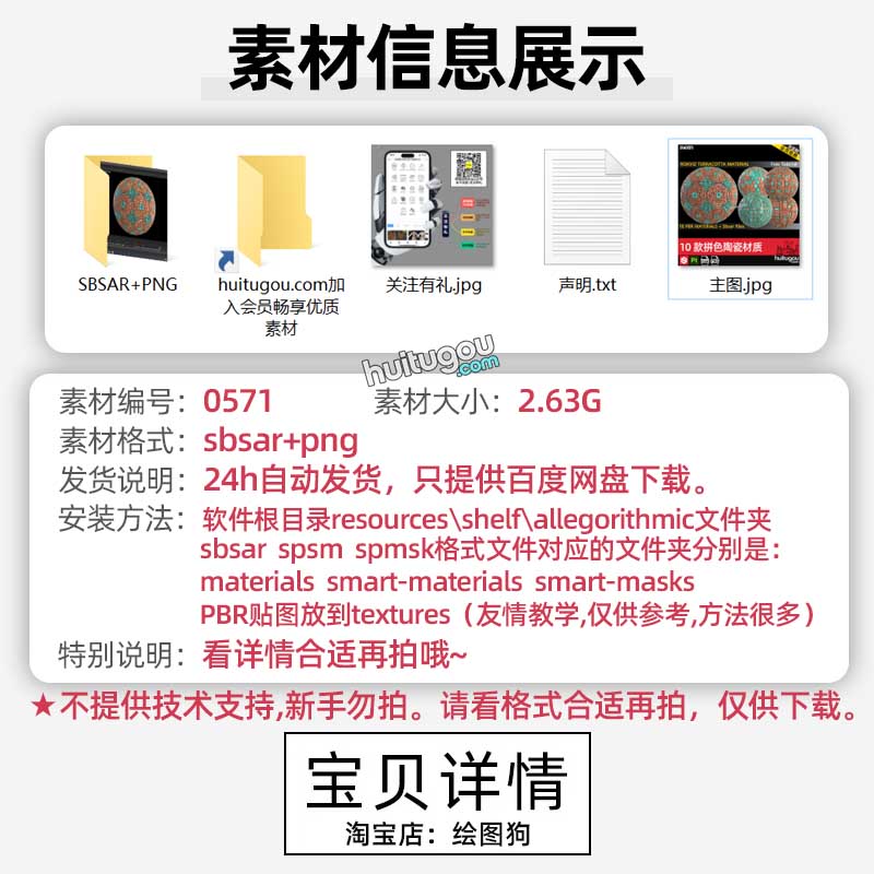 SP/Pt材质素材10款拼色墙面地面陶瓷材质sbsar材质png格式PBR纹理