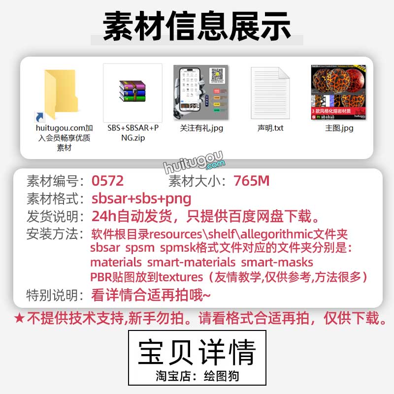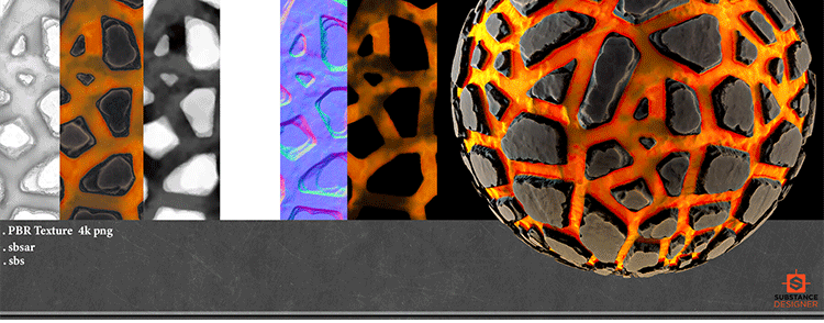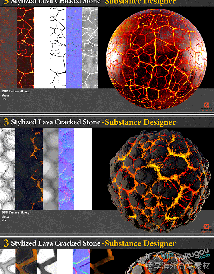 SP/Pt/SD材质素材3款风格化熔岩材质sbsar材质球SBS源文件png纹理