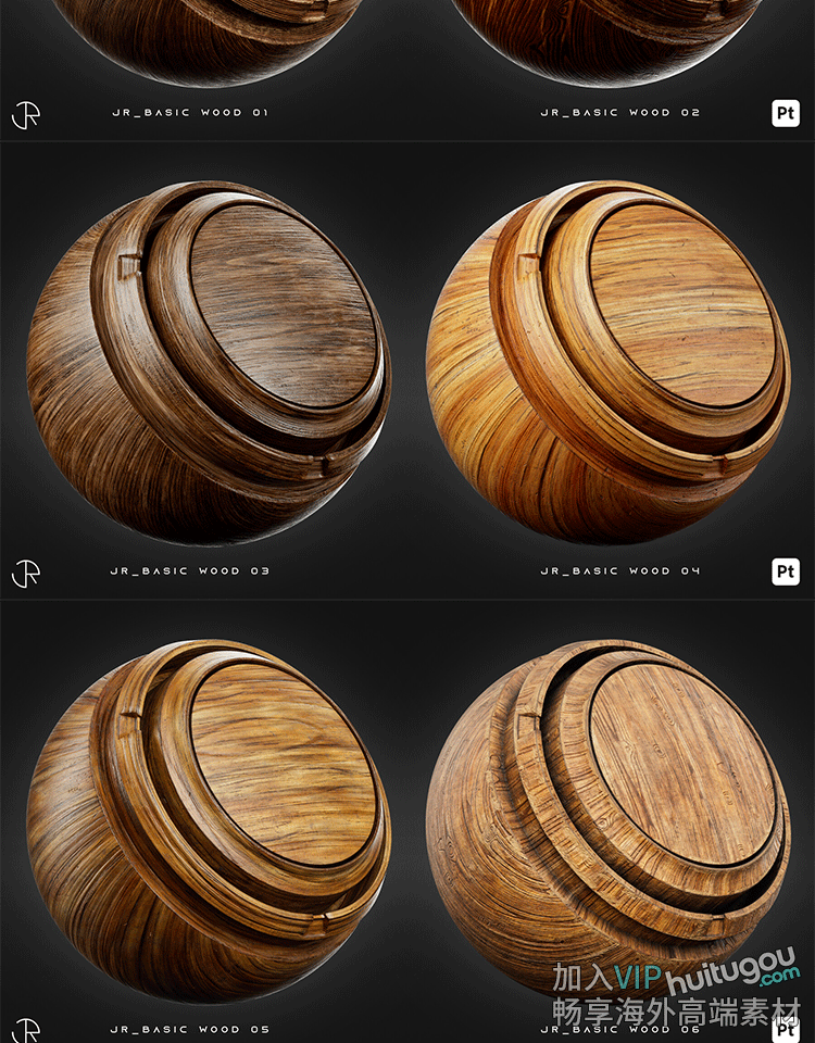 SP/Pt材质6款金属精钢珍贵木纹木材木头智能材质SPSM格式材质球