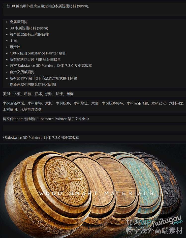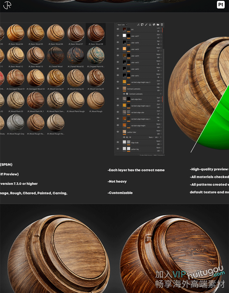 SP/Pt材质素材38款木质木纹木板烧焦涂漆雕刻智能材料spsm格式