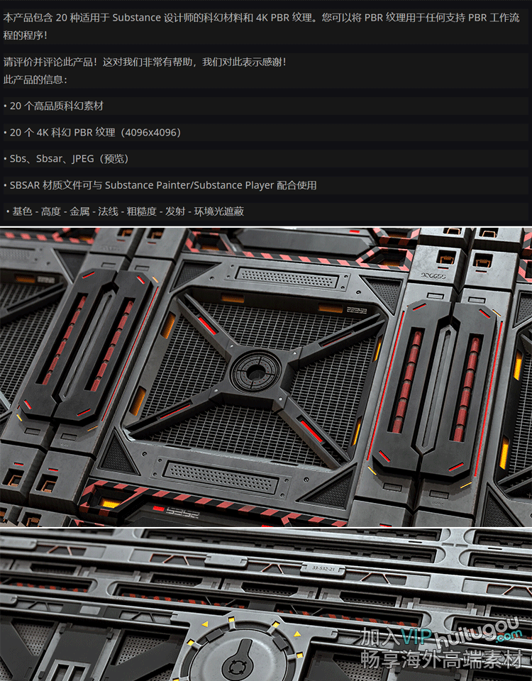 SP/Pt/SD材质PBR素材20款科幻硬表面墙壁机械sbsar材质SBS格式JPG