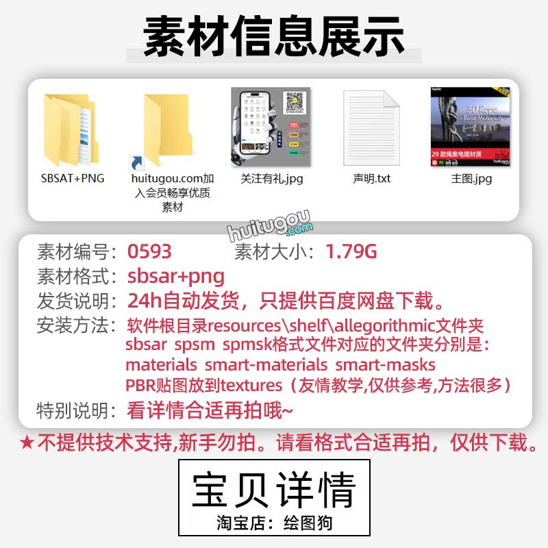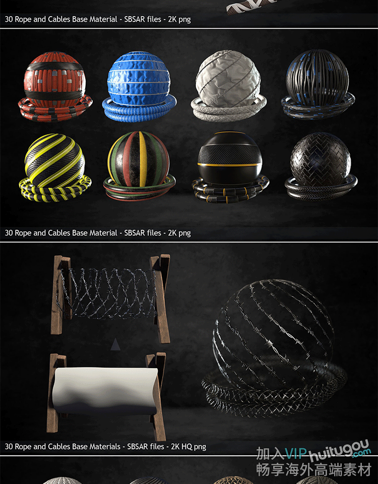 Pt/SP材质29款绳索铁丝网电缆材质sbsar基本材质球png格式PBR纹理