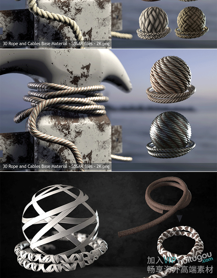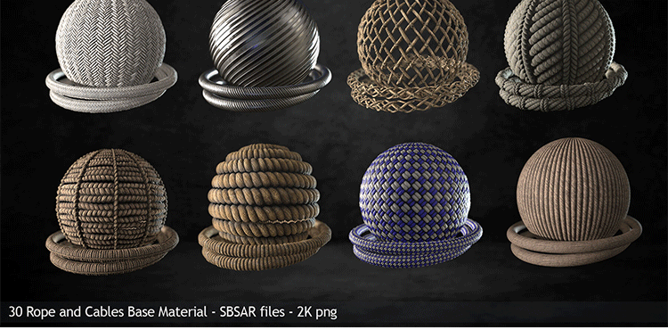 Pt/SP材质30款绳索铁丝网电缆sbsar格式基本材质球PBR纹理png贴图