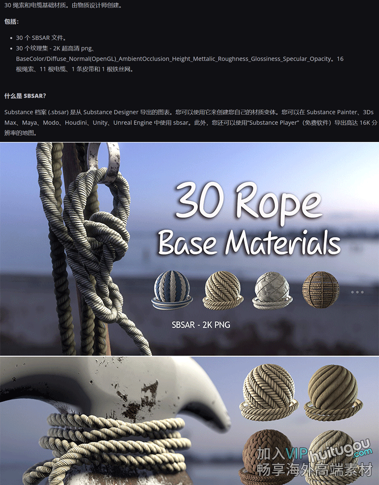 SP/Pt材质30款绳索网格铁网电缆材料sbsar材质球PBR纹理贴图JPG