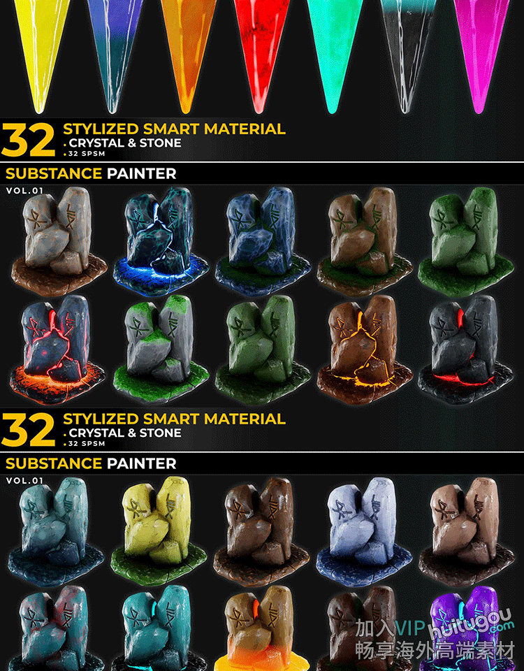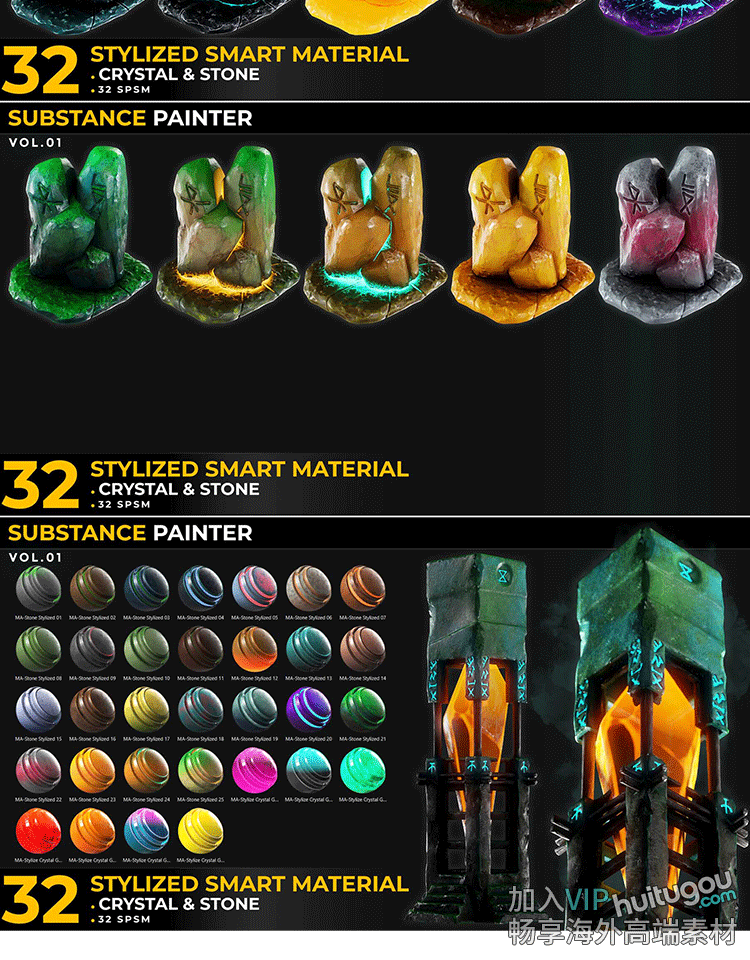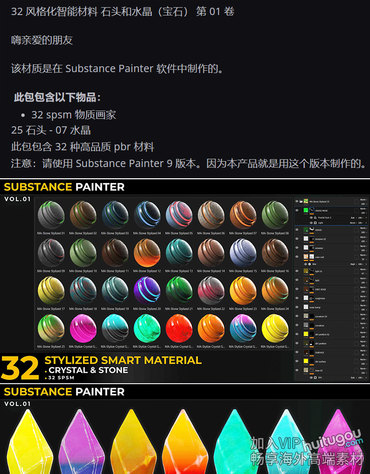Pt/SP材质球32款风格化水晶石头宝石SPSM智能材质PBR材质素材