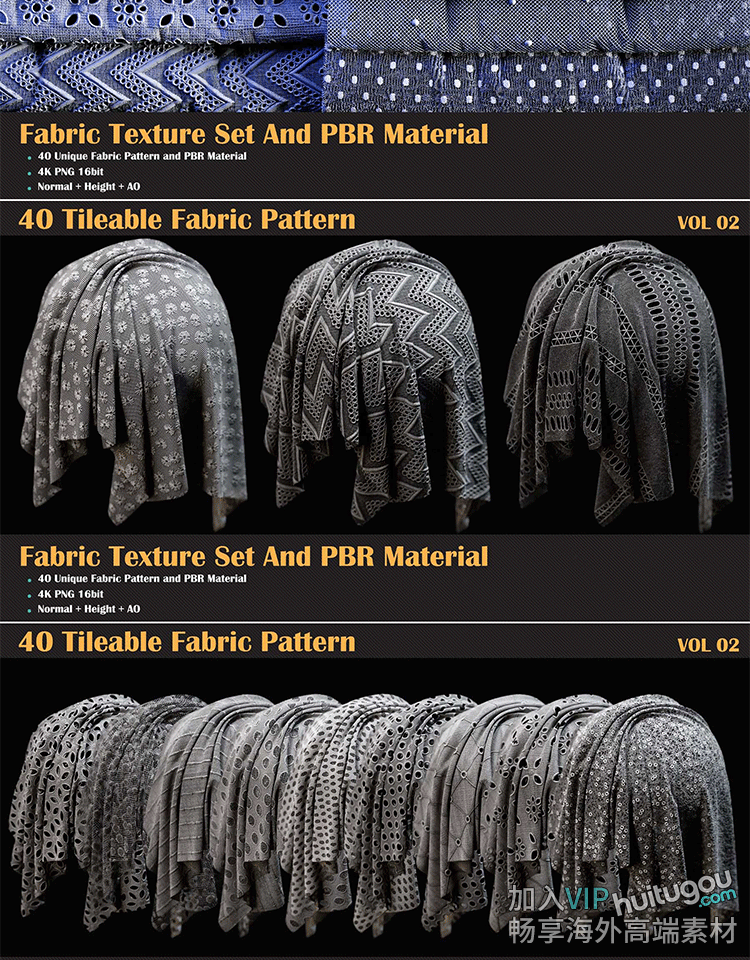 Pt/SP材质球40款服装面料衣服布料织物镂空花纹sbsar材质PBR贴图